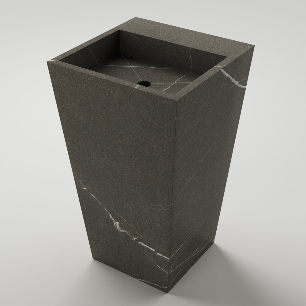 Free-standing freestanding washbasin in porcelain stoneware with marble or stone effect Made in Italy.
