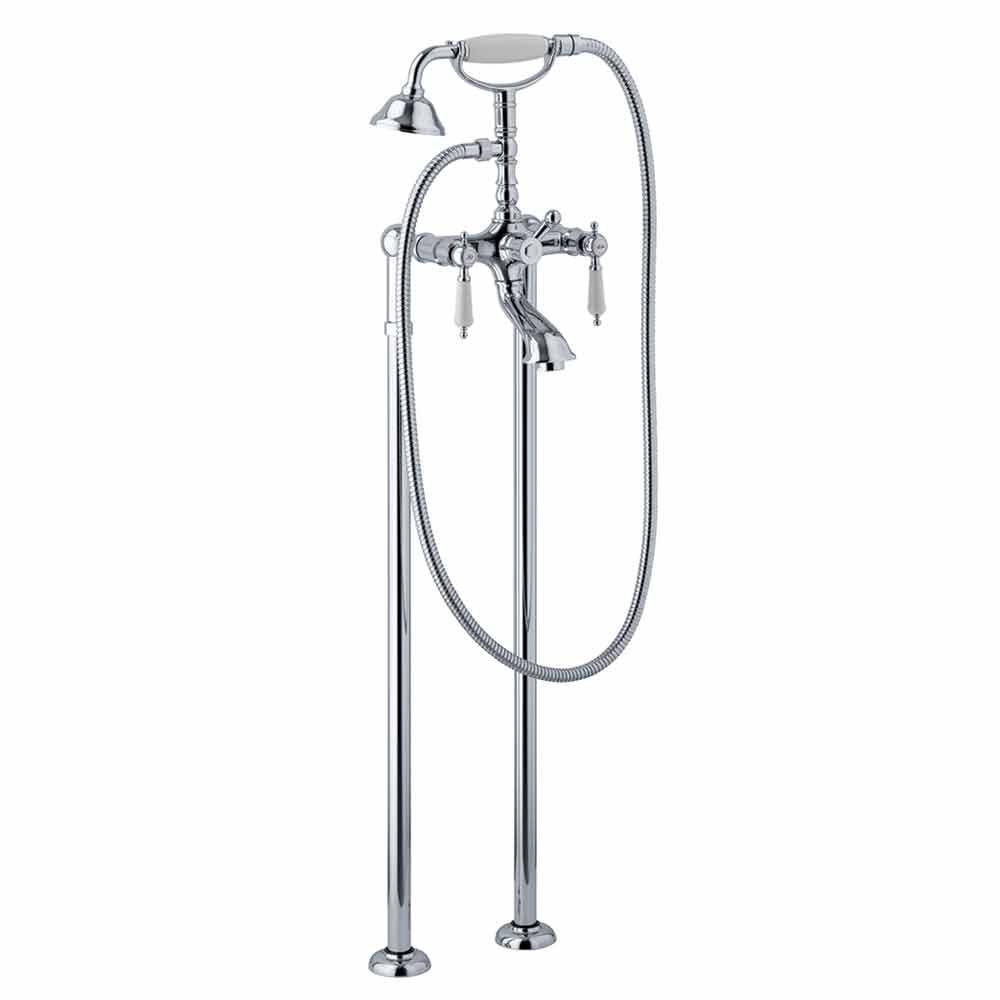 Floor standing mixer for bathtub in brass with classic Made in Italy design.