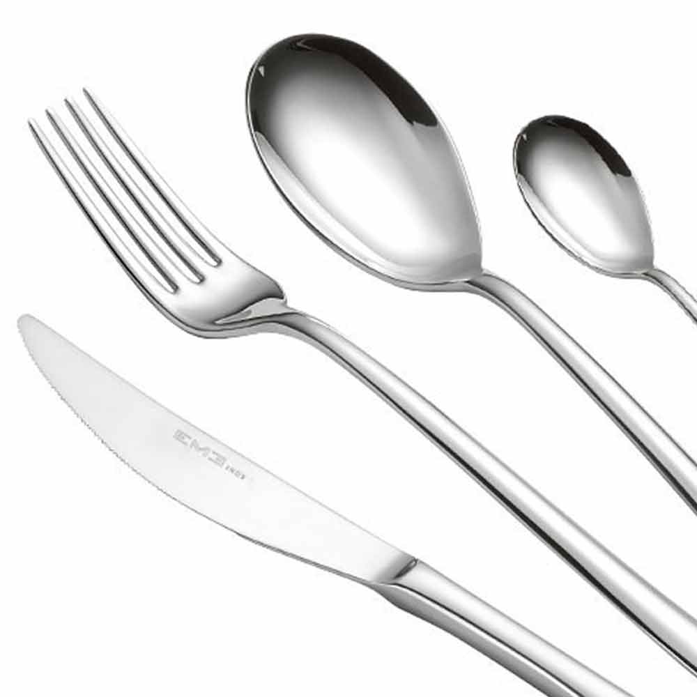 24 stainless steel cutlery with polished finish, modern design made in Italy.