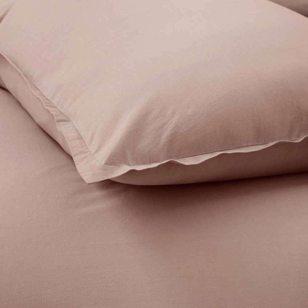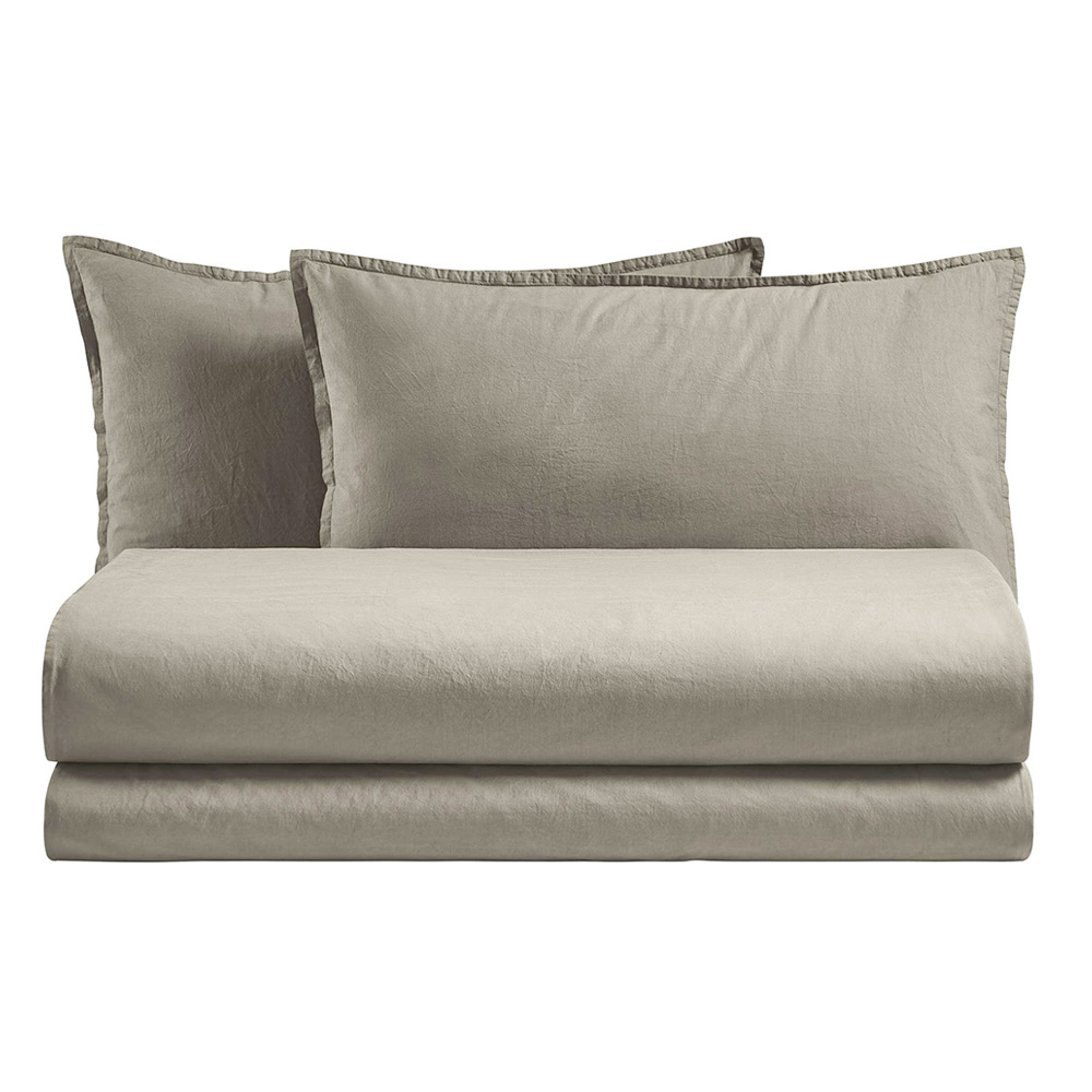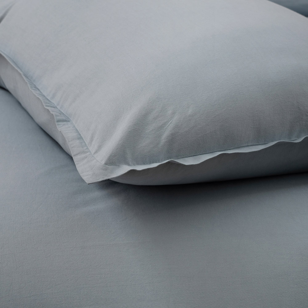 -dyed pure cotton double bed set . The soft and breathable texture of the cotton ensures unparalleled comfort, while the garment-dyeing technique gives a rich and long-lasting colour that lasts wash after wash. Perfect for those who want to combine style and functionality, this set includes a duvet cover, matching bottom sheets and pillowcases, all designed to offer you maximum comfort and add a touch of sophistication to your room.