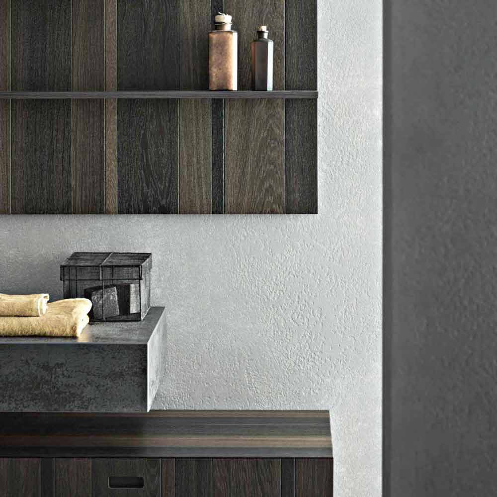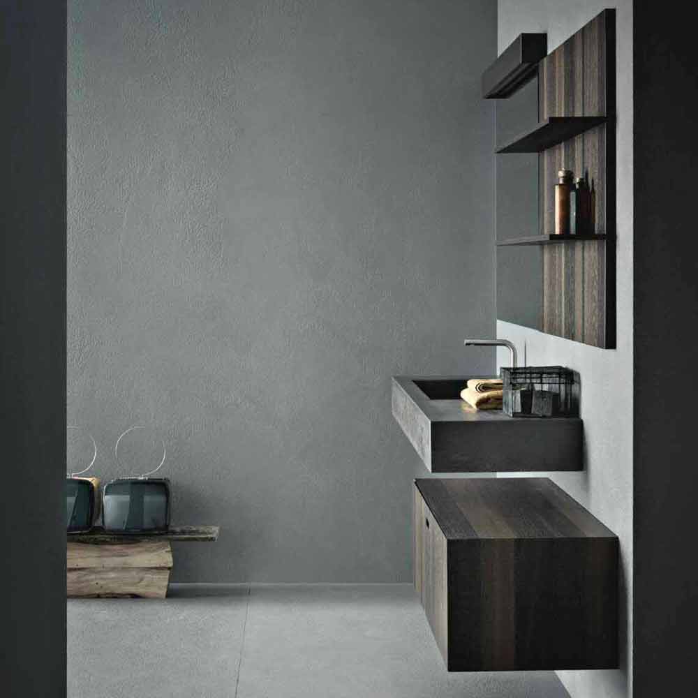 A composition inspired by nature, eco-sensitive , designed with respect for the environment: the cement resin, as well as wood and stone, are in fact worked with a manual process that enhances its imperfections, making each bathroom a unique piece .