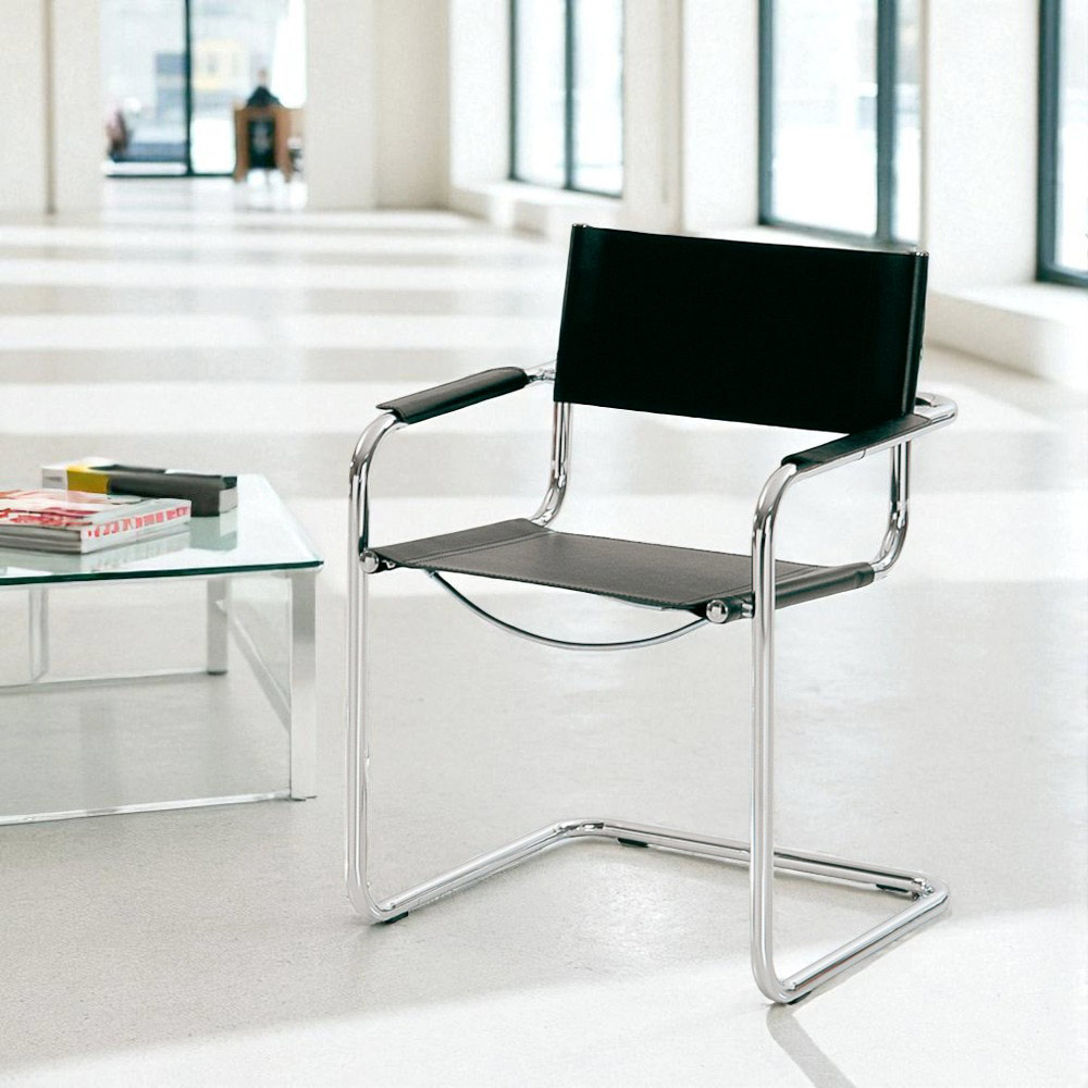 The Cirillo chair with armrests for meeting rooms or conference rooms is ideal because it embodies all these characteristics; it features a chromed metal frame and a seat, backrest, and armrests in black bonded leather.