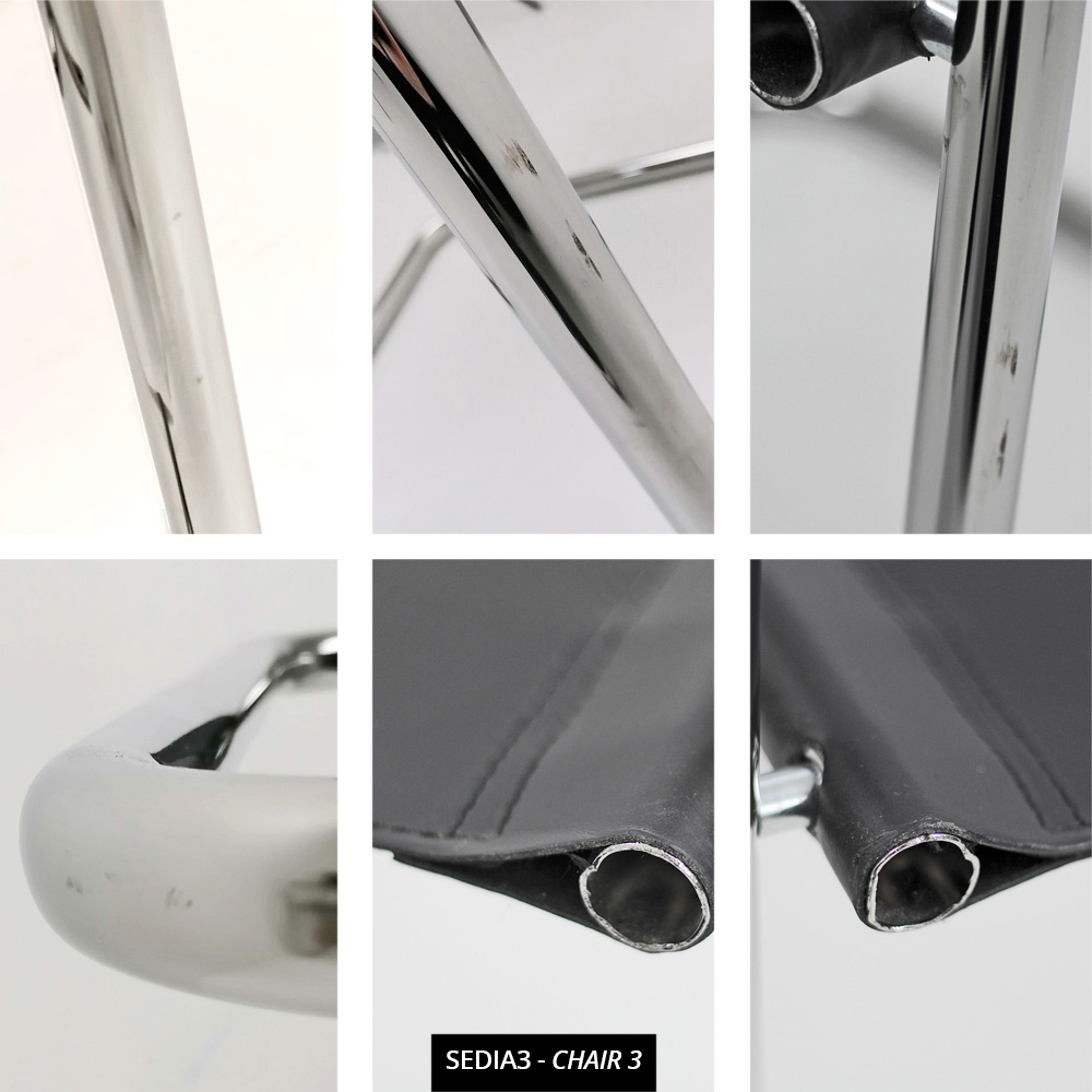 Modern meeting room or conference room chair in chromed metal and black bonded leather.