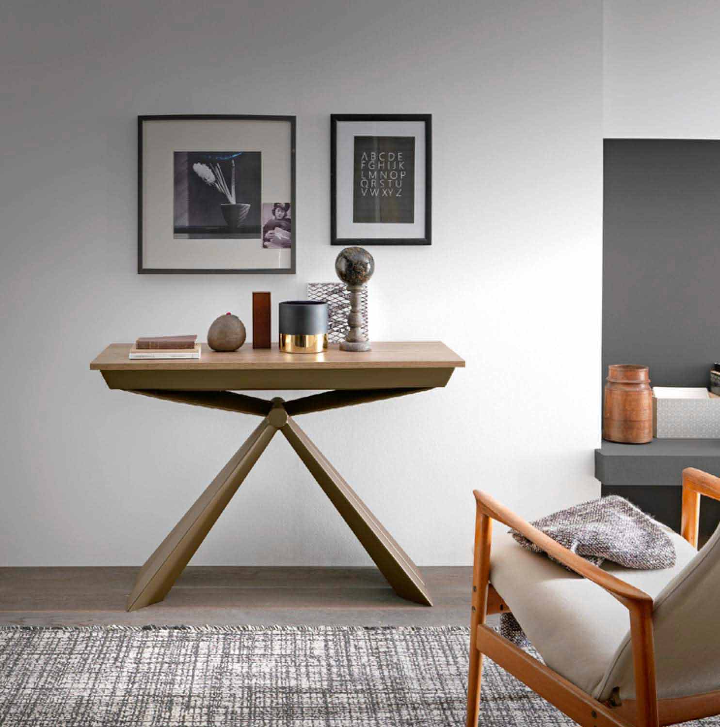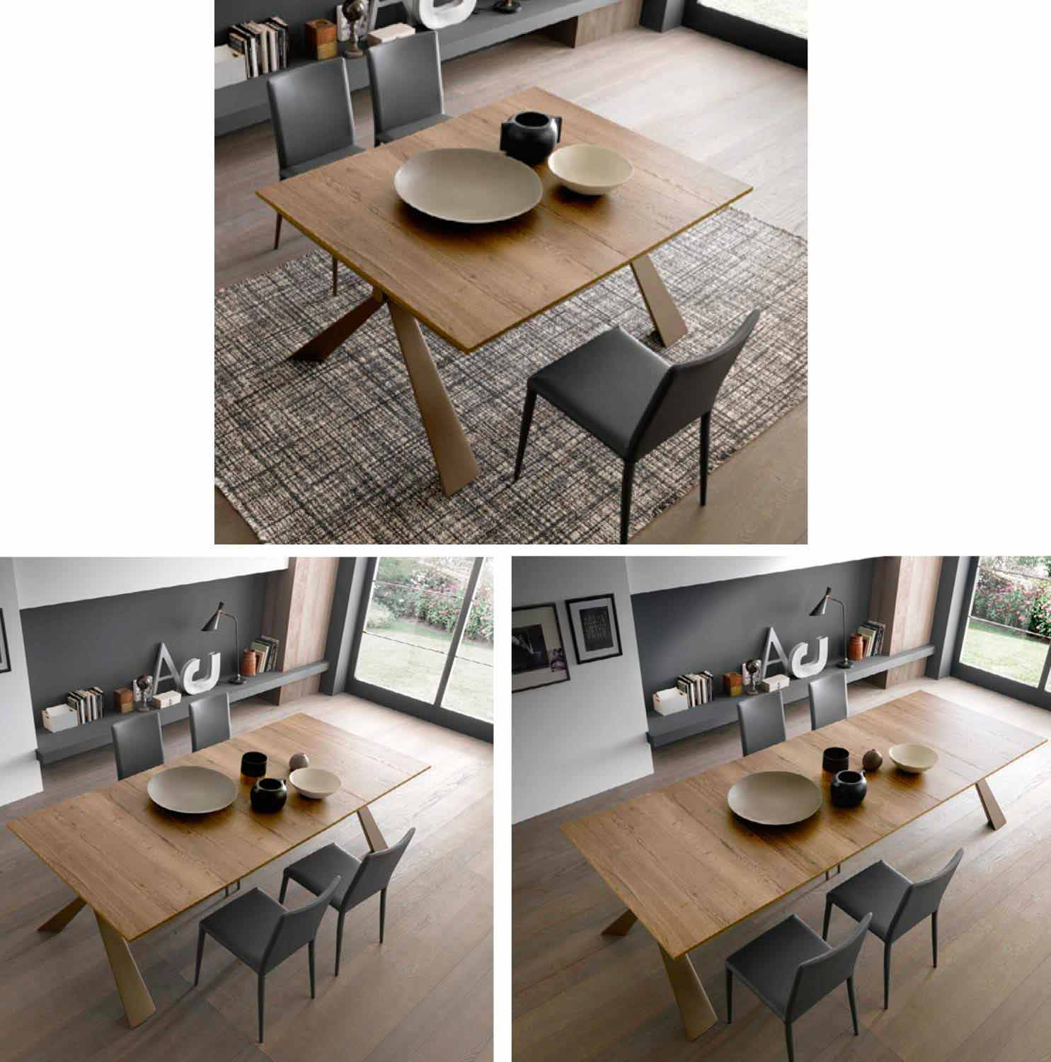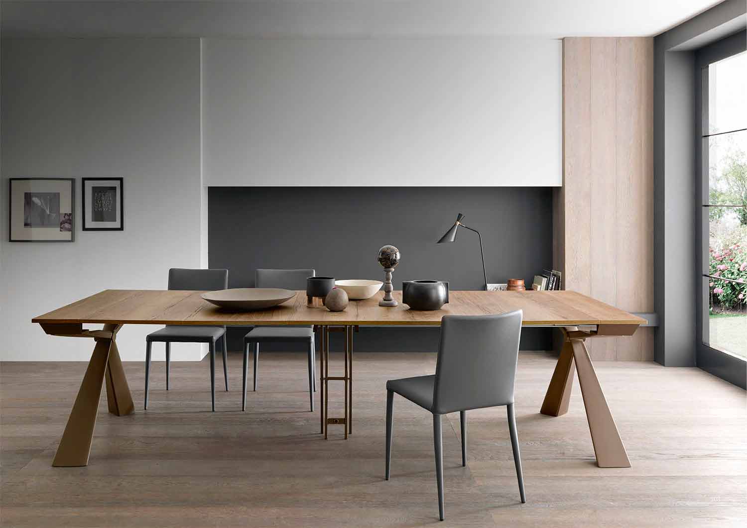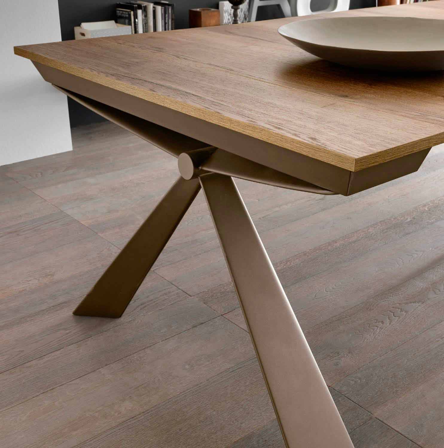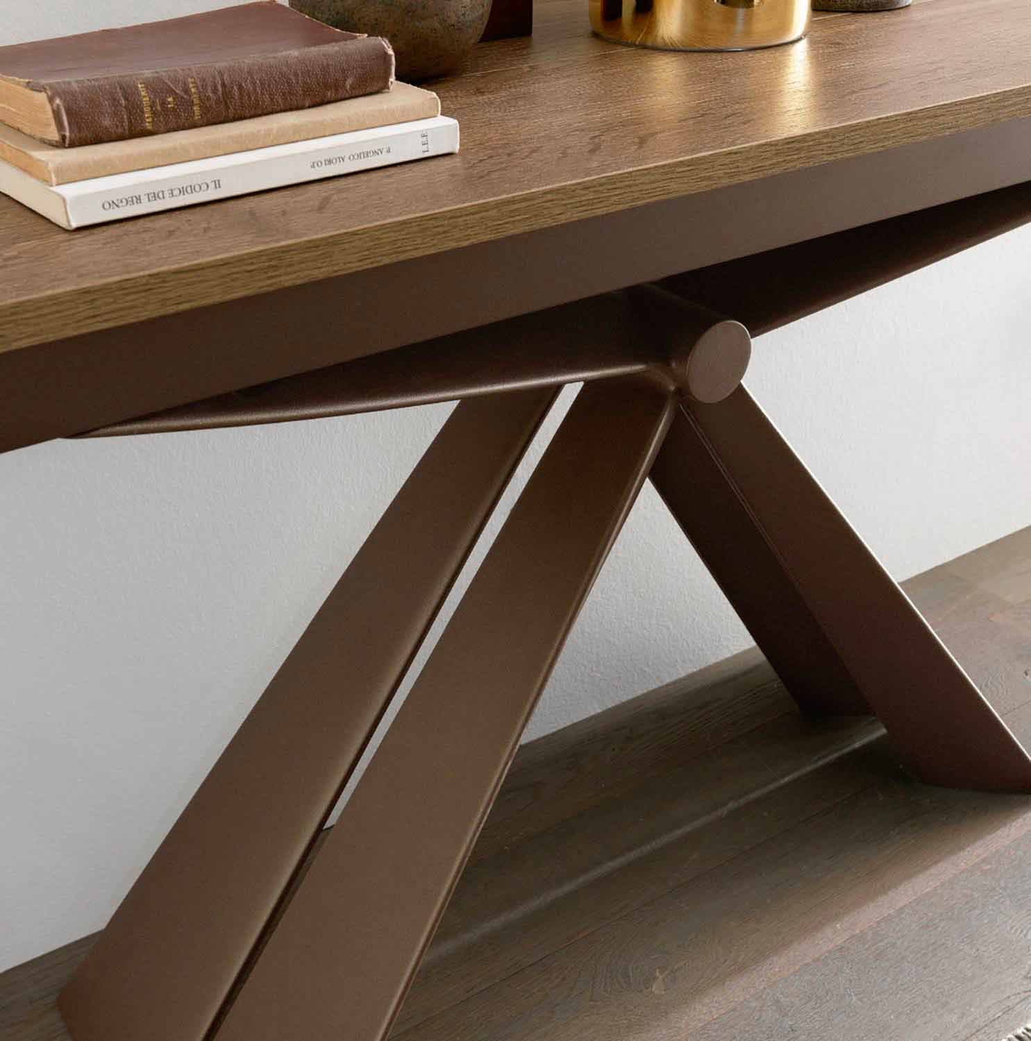 extendable console is outlined by a sculptural design thanks to the shape of the metal structure which converges its queues in a central node.