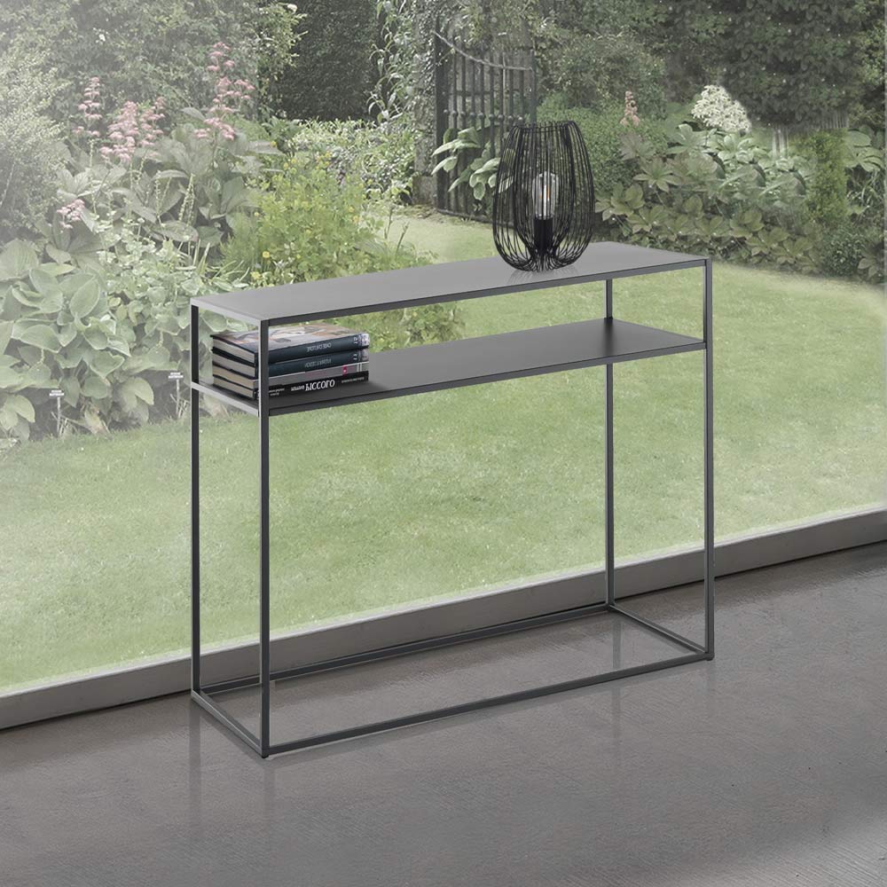 matt anthracite painted steel and 1.5 cm high top and shelf made of 1 mm thick matt