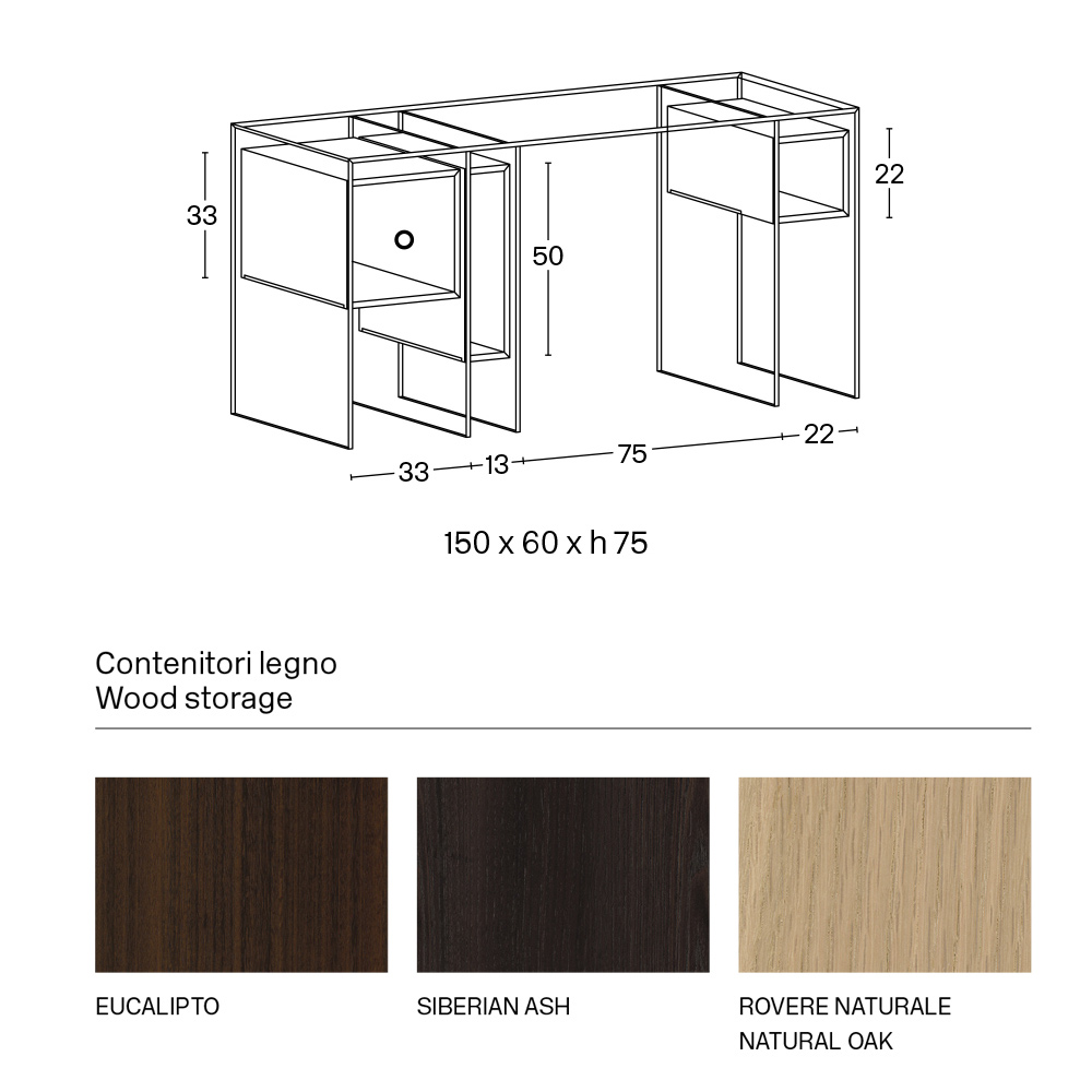 great versatility of use within the different rooms of the house as it was born as a desk but also finds its place in the entrance as a practical console or inside the sleeping area as a dressing table. The wonderful wood finishes proposed create a perfect harmony with the glass thus offering exclusive and classy furnishing solutions, ideal for satisfying every stylistic need and for furnishing any domestic space with personality with a