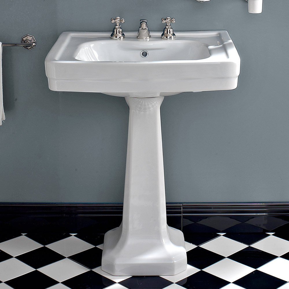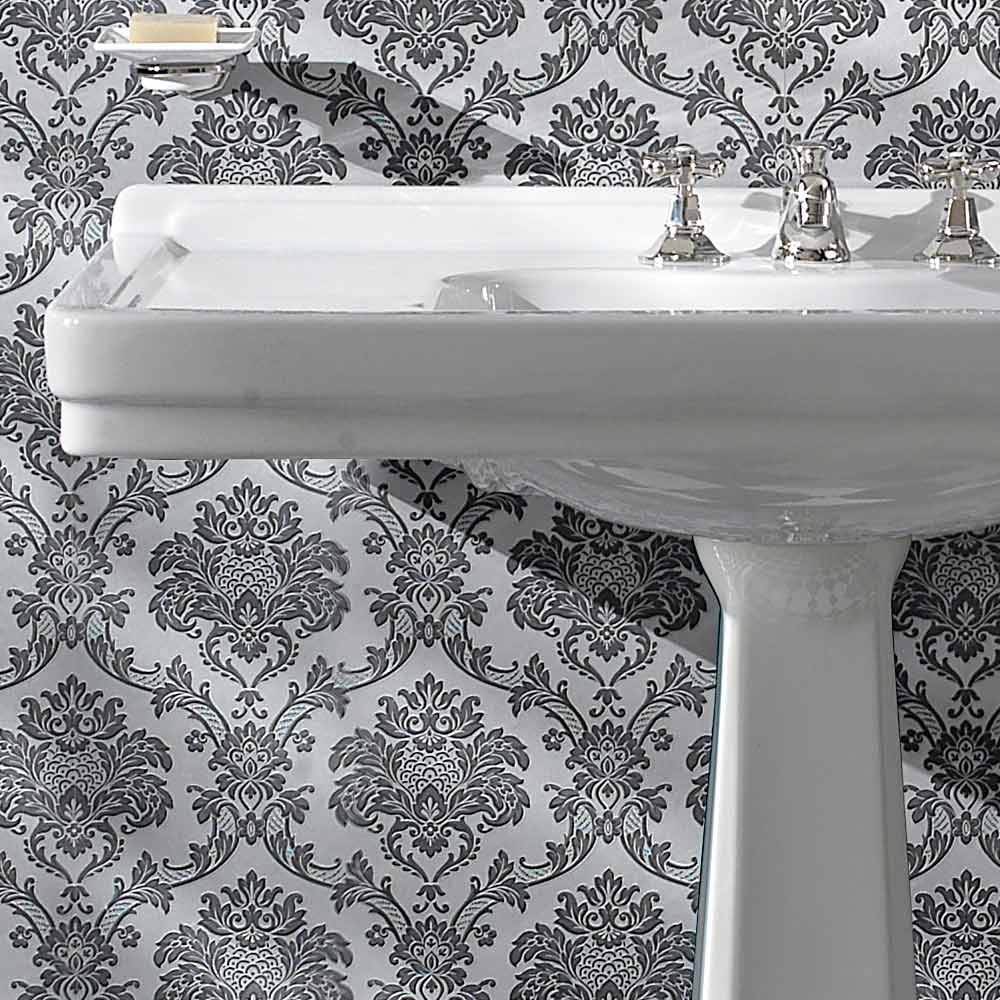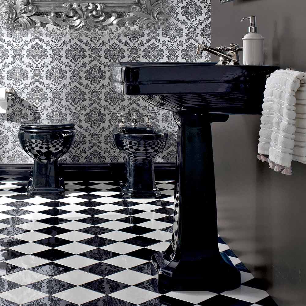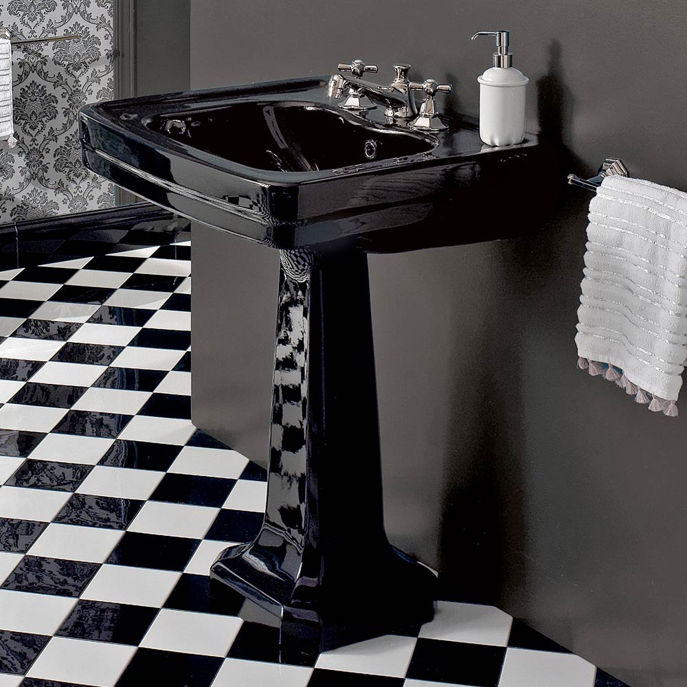 Console washbasin on column made in Italy in white or black ceramic, vintage style, Marwa.