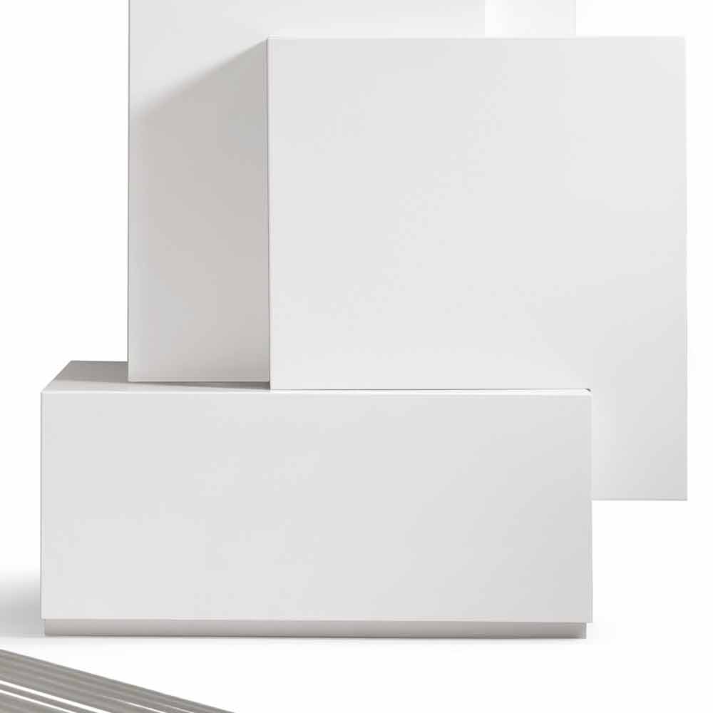 Floor-standing cabinet made up of 5 stackable MDF elements matt white lacquered.