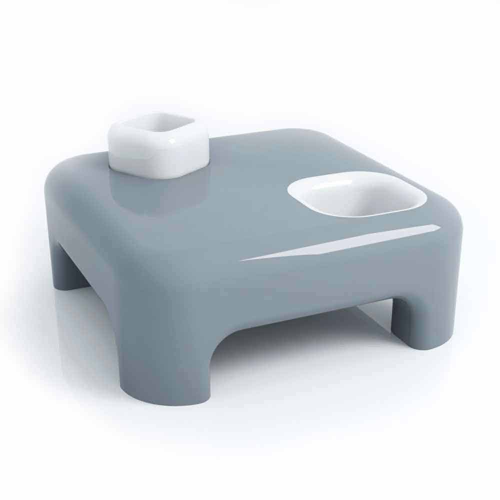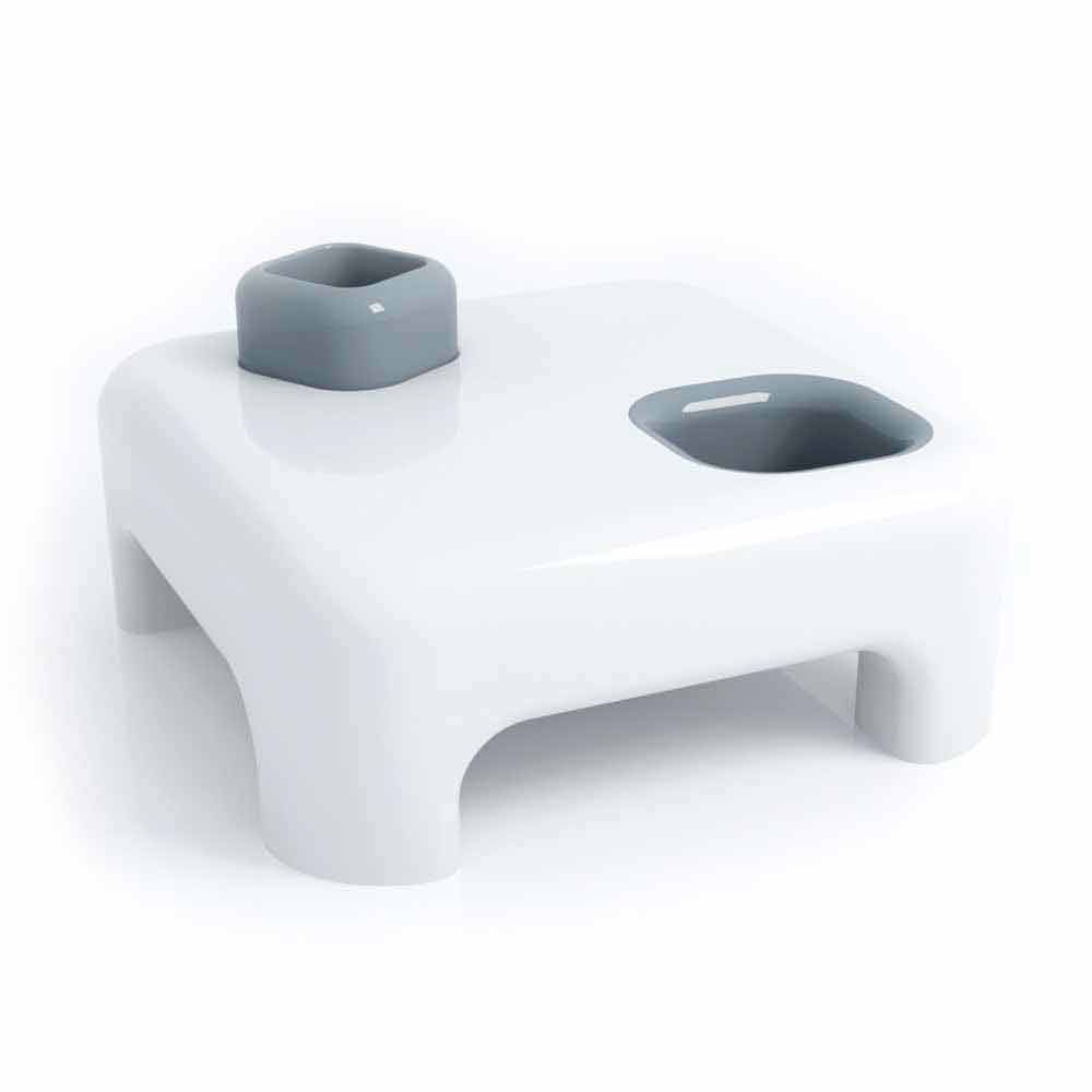 A reversible “cube” is housed in a hollowed-out compartment and appears to have been extracted from the hole at the other end of the shelf. These three elements provide various additional functions: riser, vase or container for the "cube". Pocket emptier for the carved footprint, while the hole can become a vase or storage compartment (bottles, magazines, plants ...).