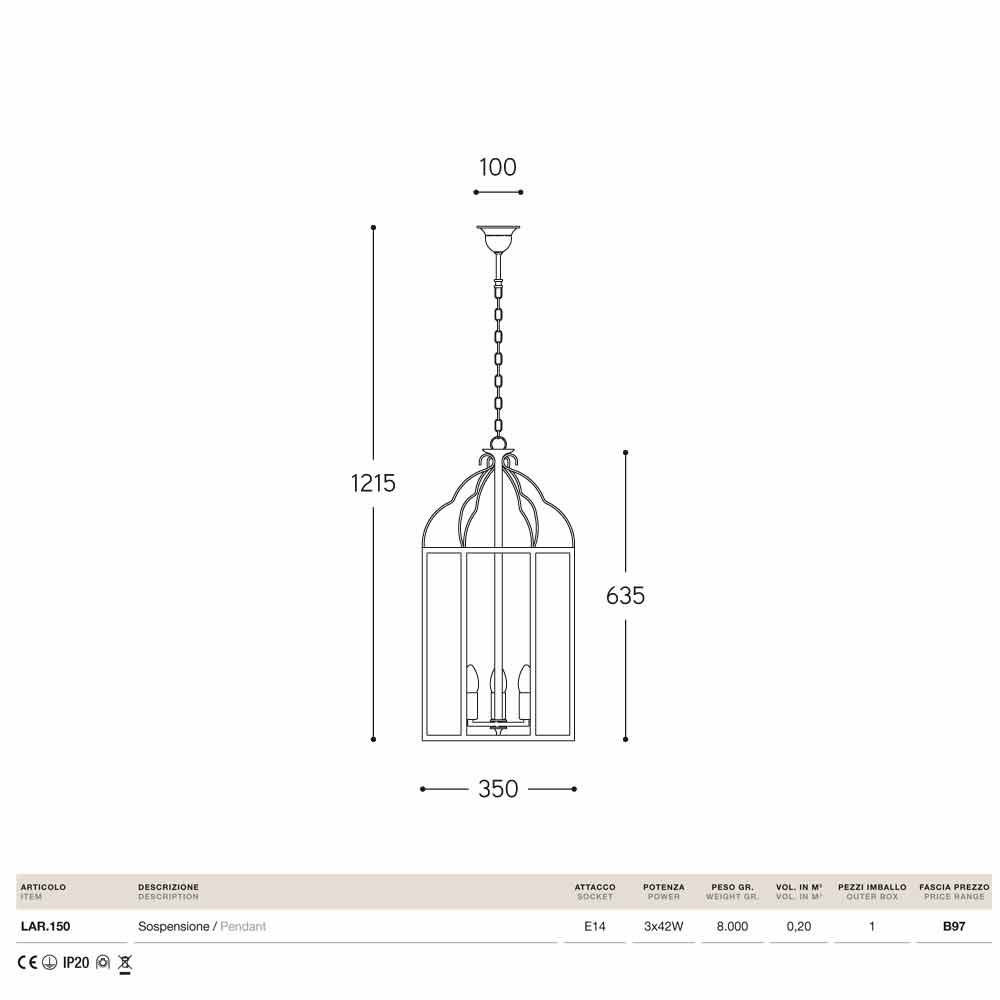 Contemporary three-lights pendant lamp Turandot, handcrafted product