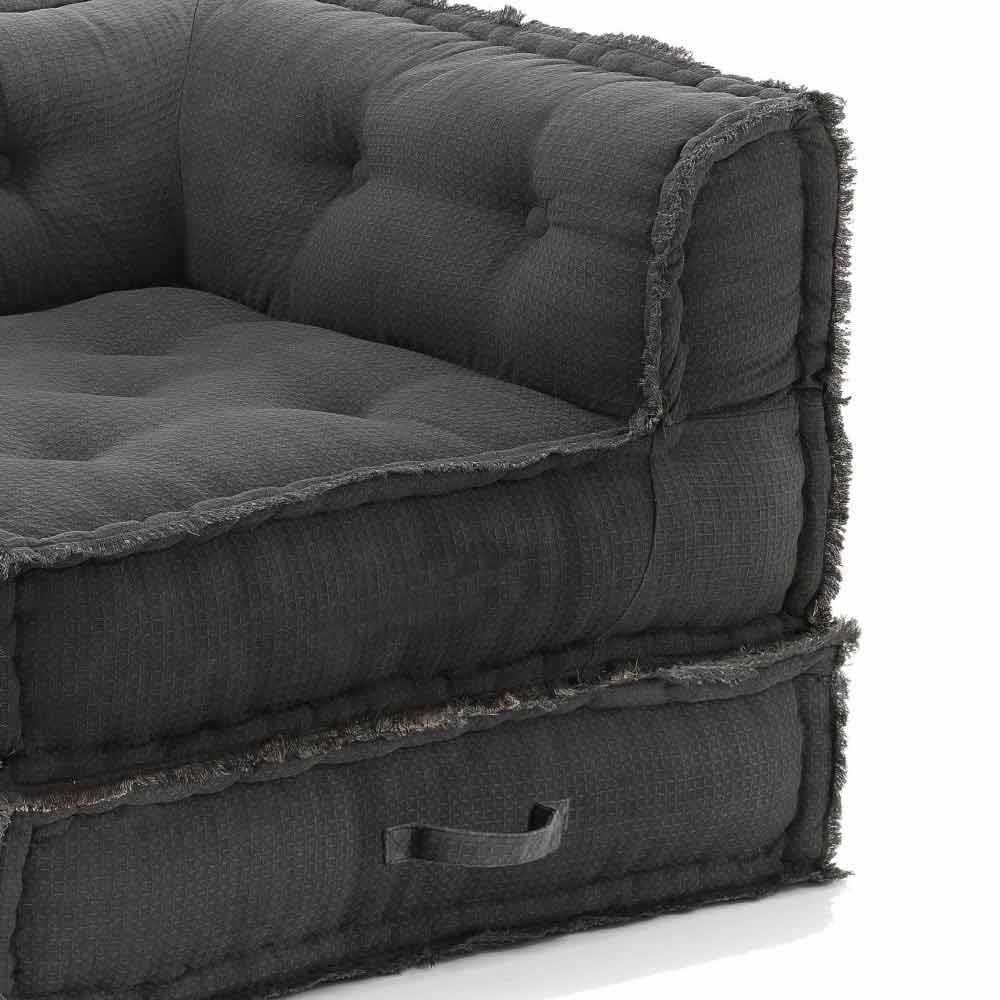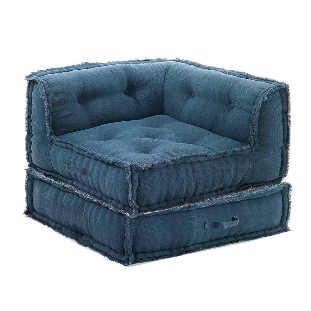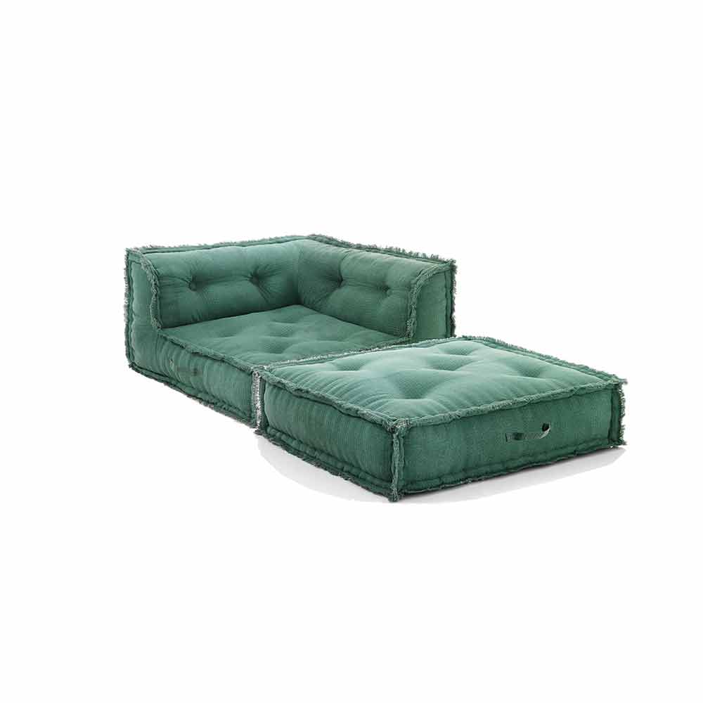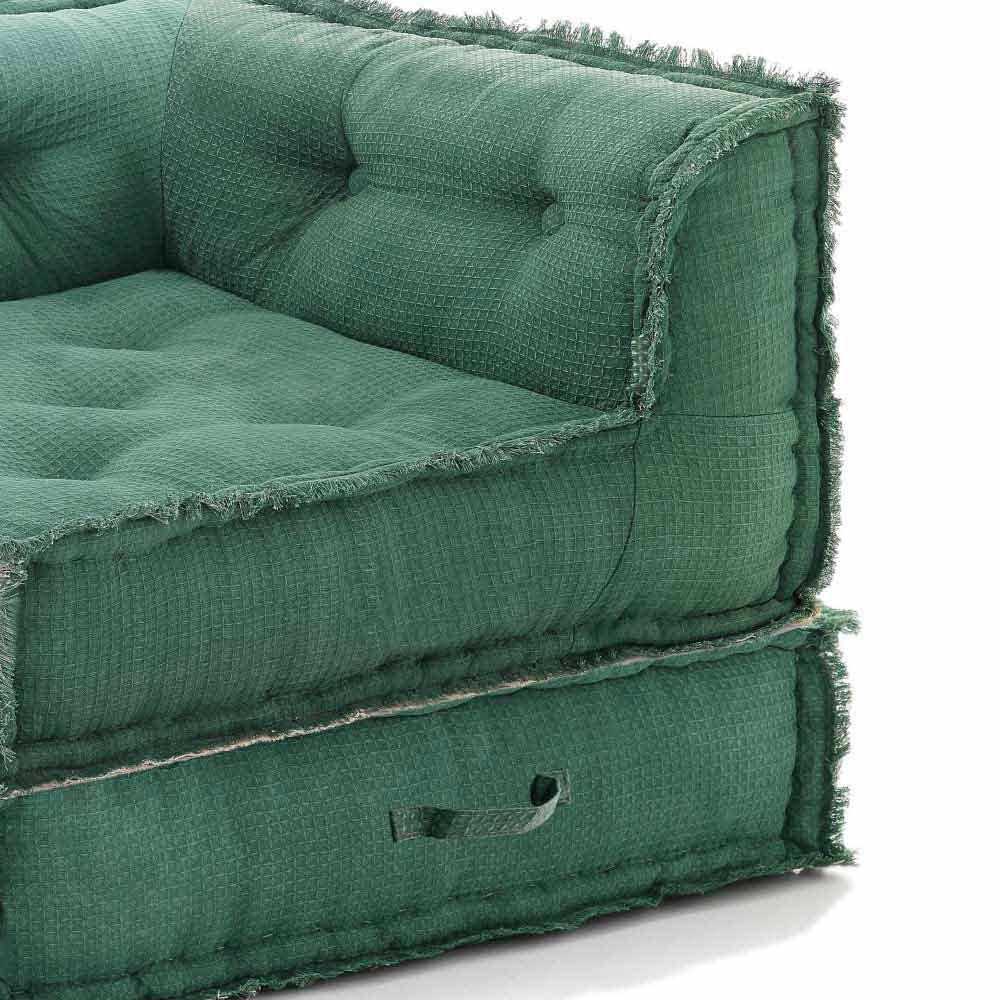 Ethnic design corner lounge chaise longue armchair, produced in grey, green or blue cotton.