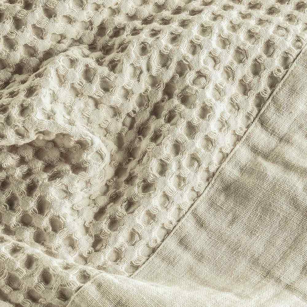 Perfect for those who love to surround themselves with quality Made in Italy products , this gown is ideal for those looking for a garment that is both functional and stylish. Ideal for cold mornings or for relaxing after a long day, this honeycomb gown with linen flounce is a real investment in your daily comfort.