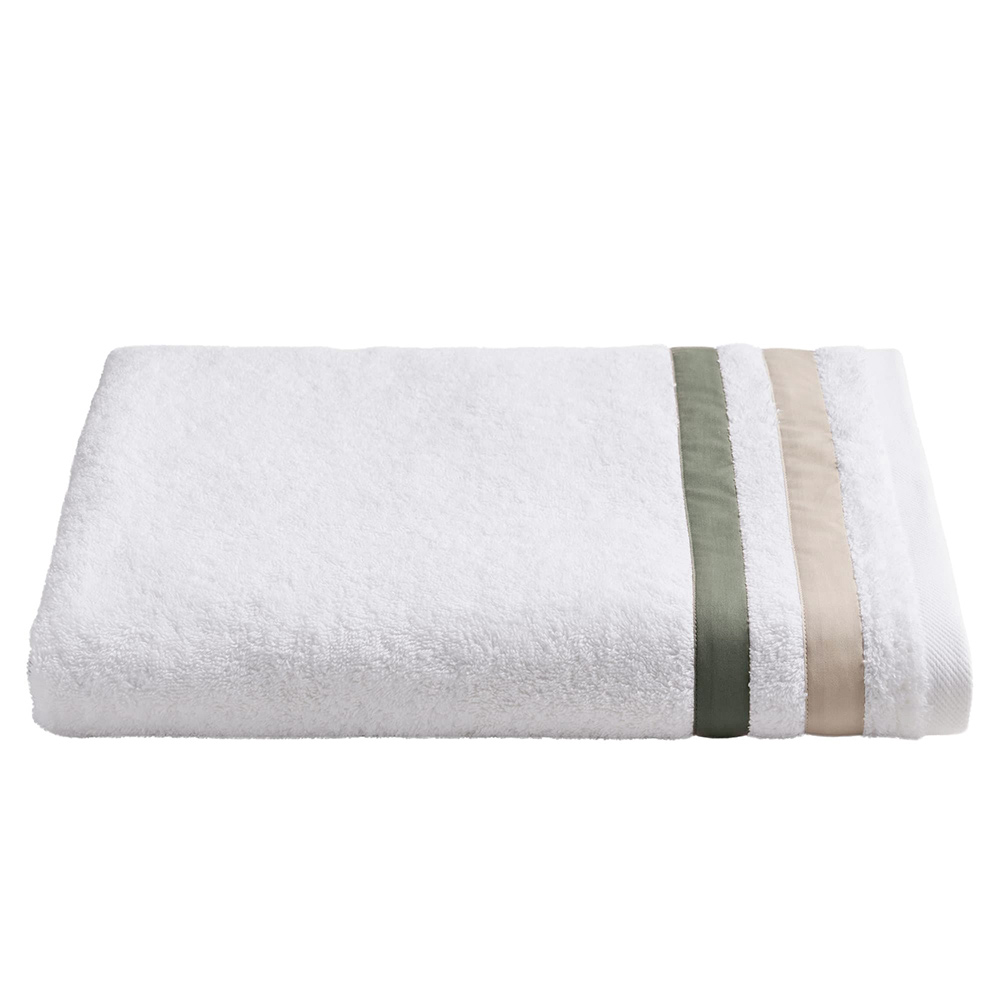 Shower towel in pure cotton sponge 530 gr/m2 with double frill in pure cotton percale 200 tc.