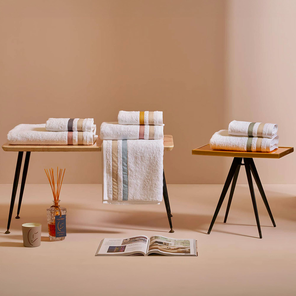 double frill in 200 tc pure cotton percale not only adds a touch of elegance to the design, but also a delicate sensation of comfort on the skin. Ideal for those who do not want to compromise on quality and style, this towel offers a superior experience of softness and absorbency.