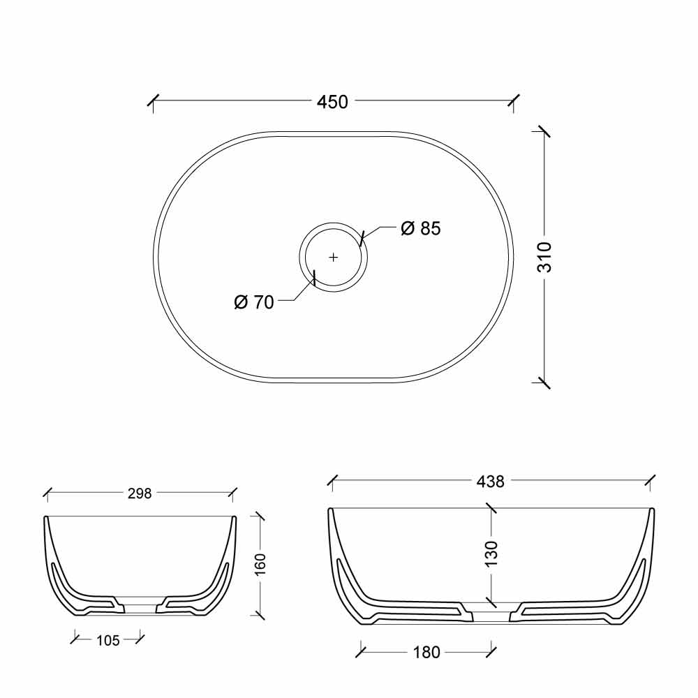 NB:   Free discharge ceramic drain included, tap excluded.