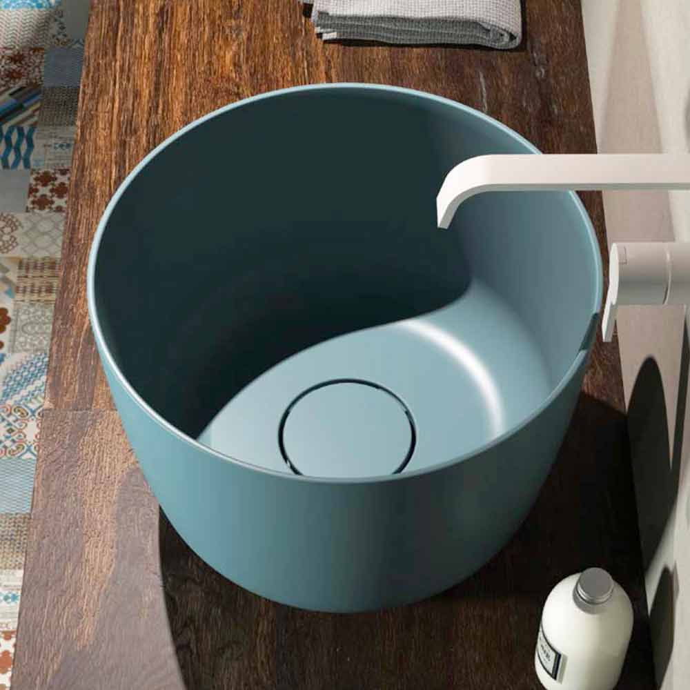 Modern circular countertop washbasin made in Italy, Lallio