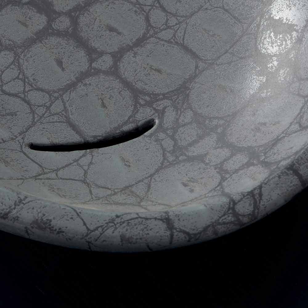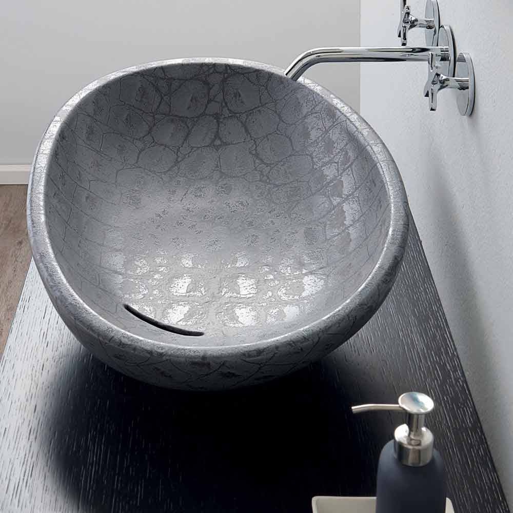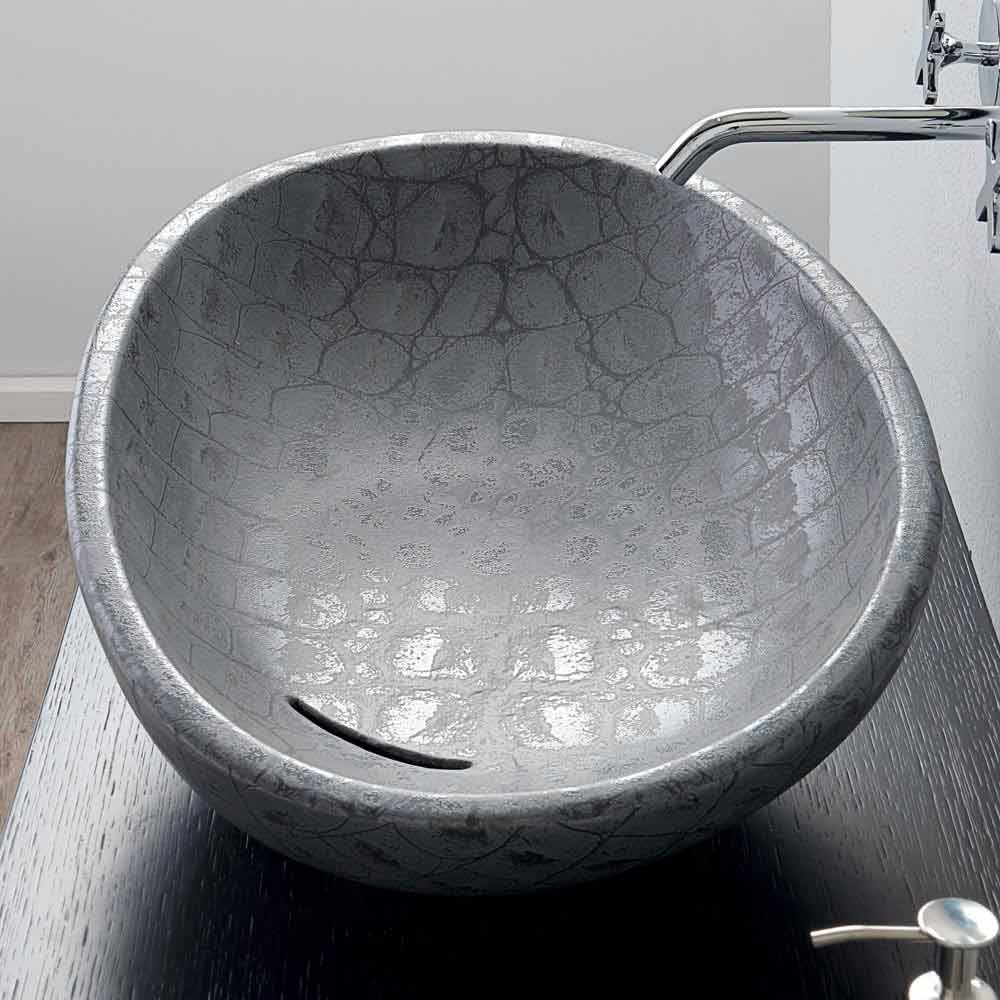 Glossy grey crocodile print ceramic countertop washbasin made in Italy