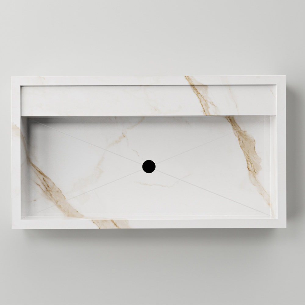 Countertop washbasin in marble-effect porcelain stoneware Made in Italy.
