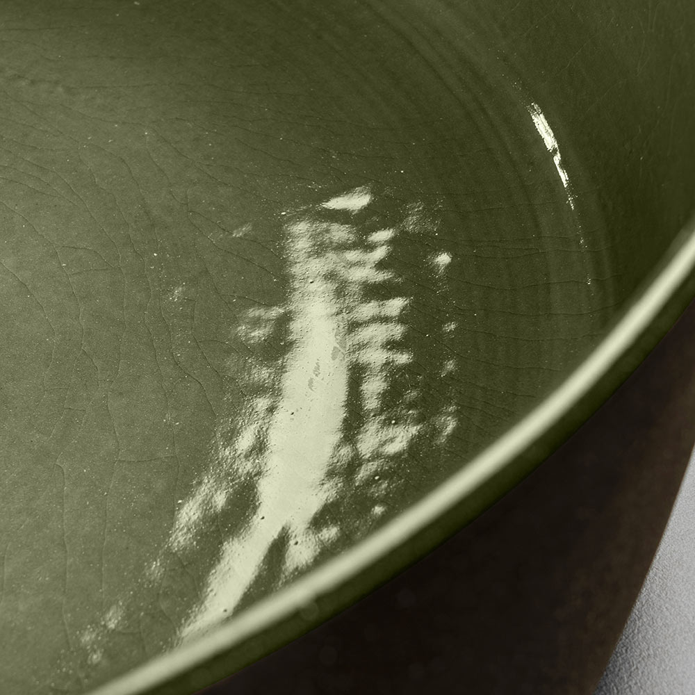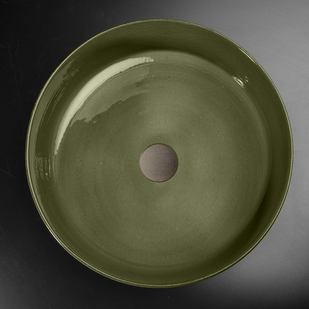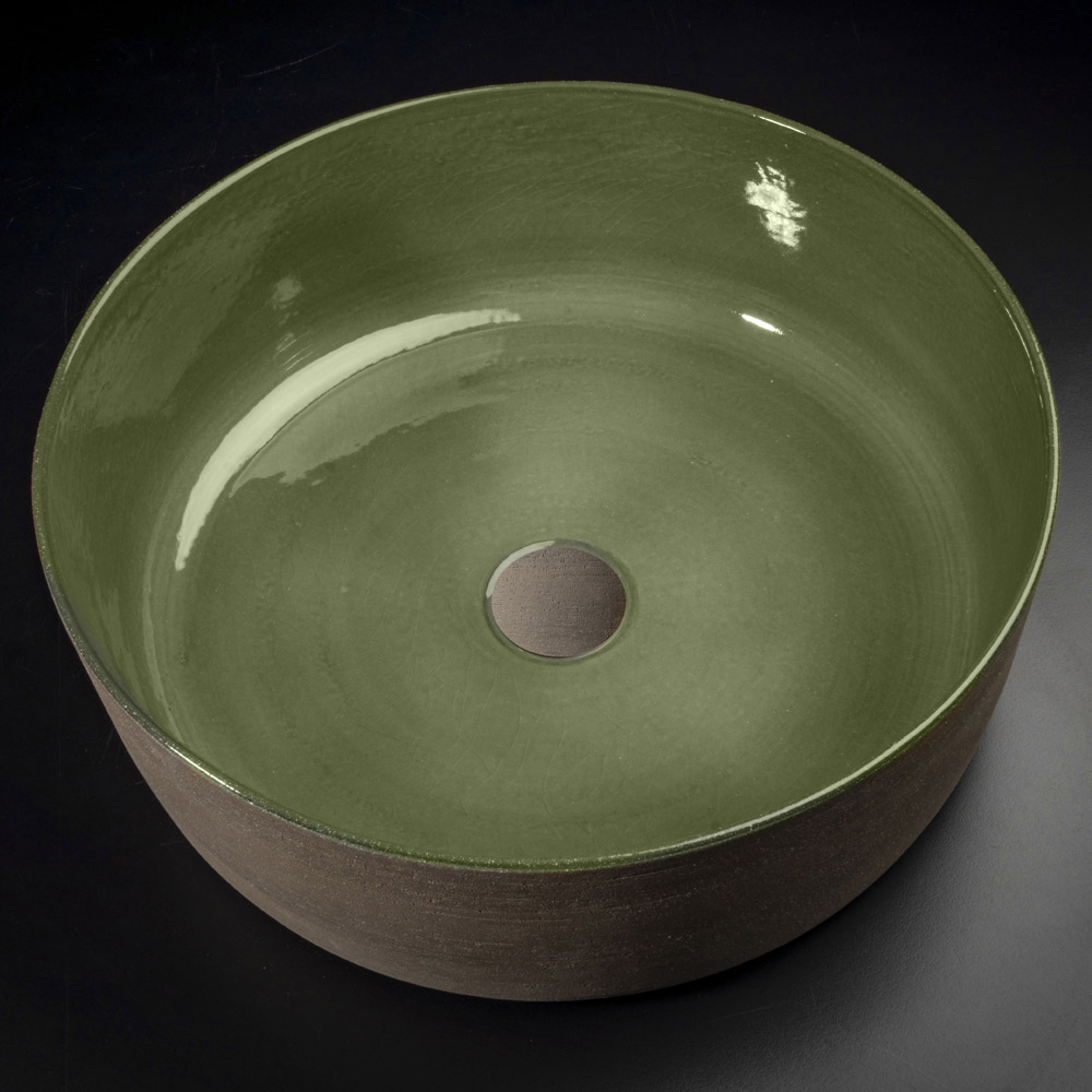 Countertop washbasin in hand-turned green refractory clay Made in Italy.