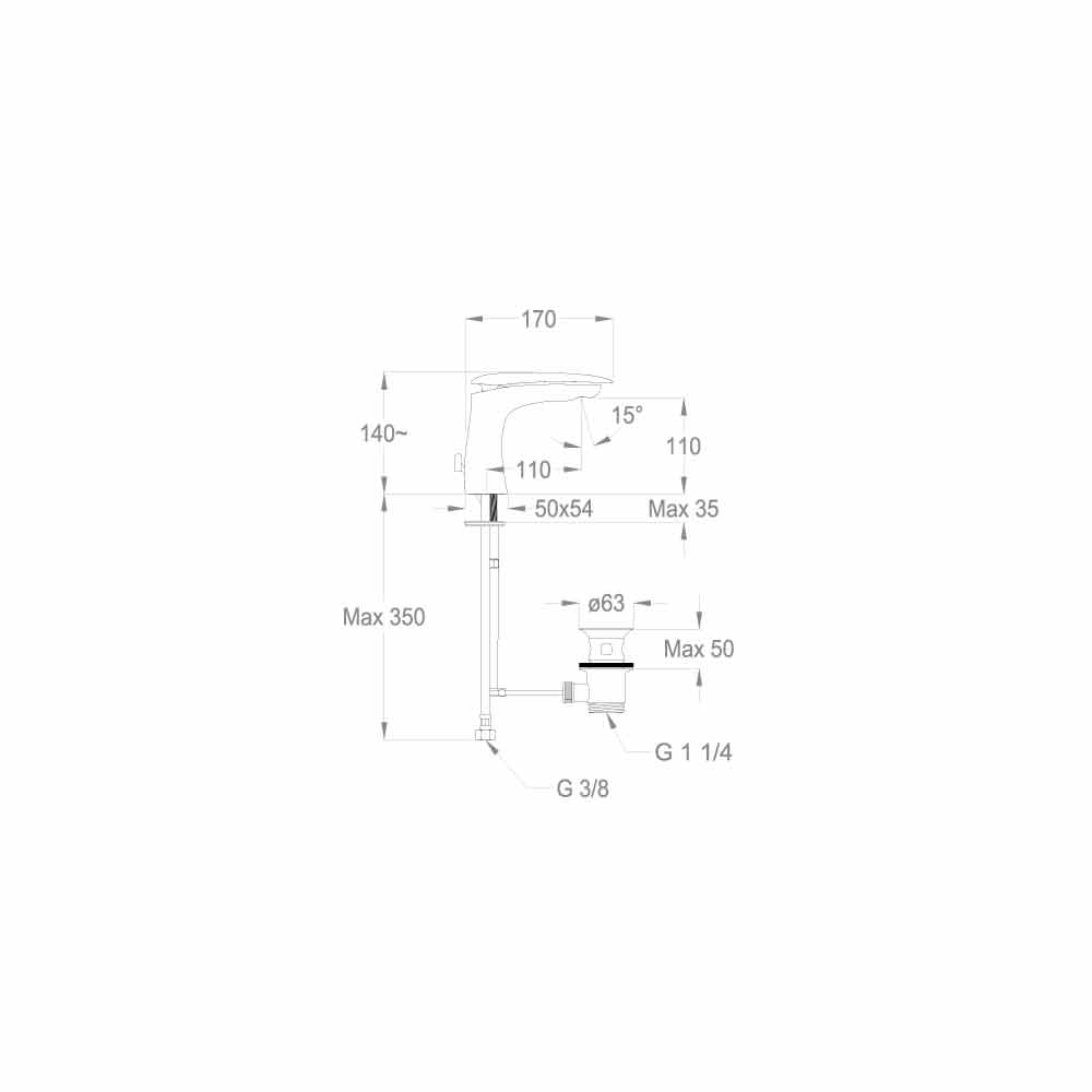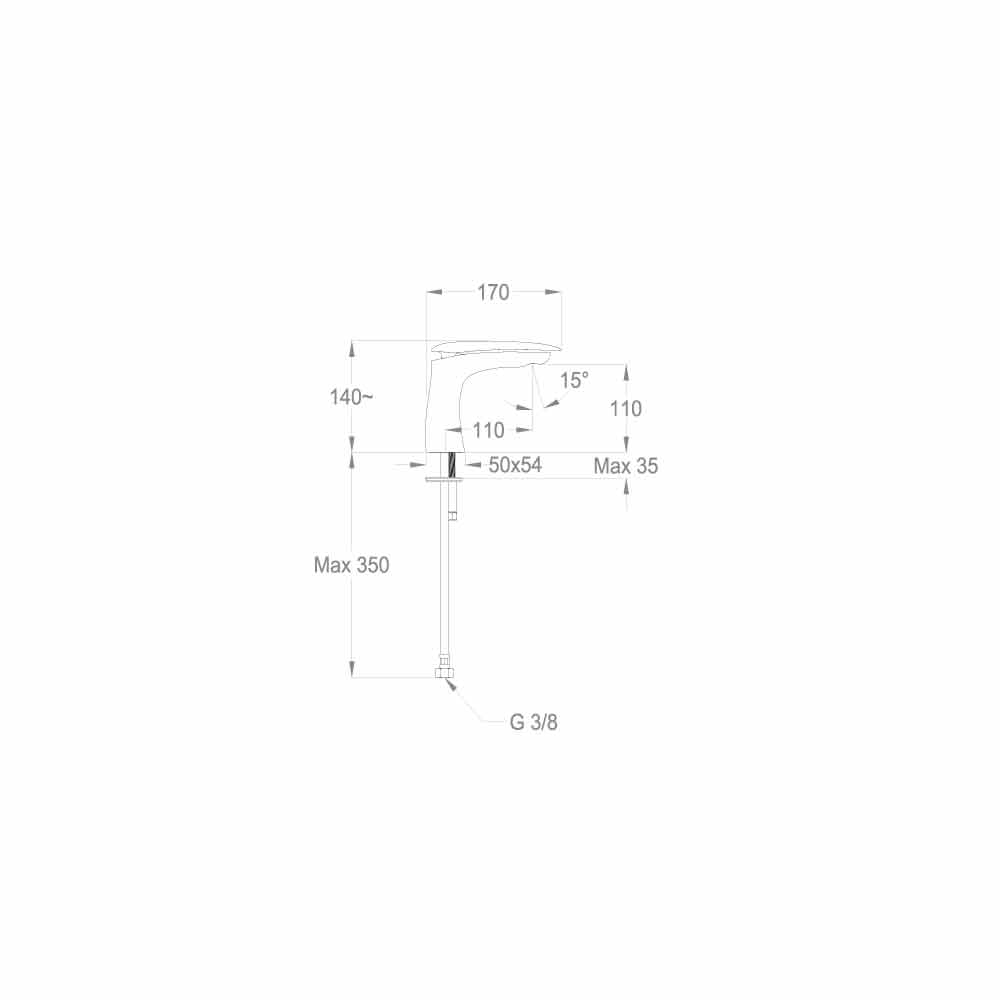 basin mixer 140mm high and with a centre distance of 110mm entirely