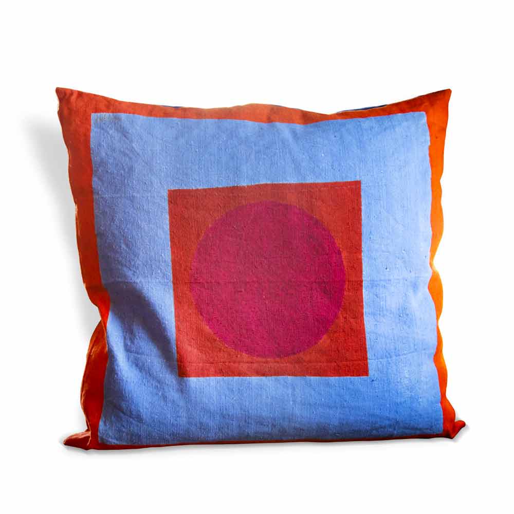 Handcrafted cushion in antique hemp canvas, painted and hand made, square dimensions, unique piece of workshop, with quality made in Italy.