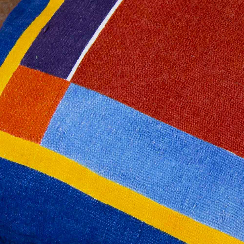 Handcrafted cushion made of resistant and precious ancient canvas of hemp, painted entirely by hand, standard dimensions, unique piece of workshop with made in Italy quality.