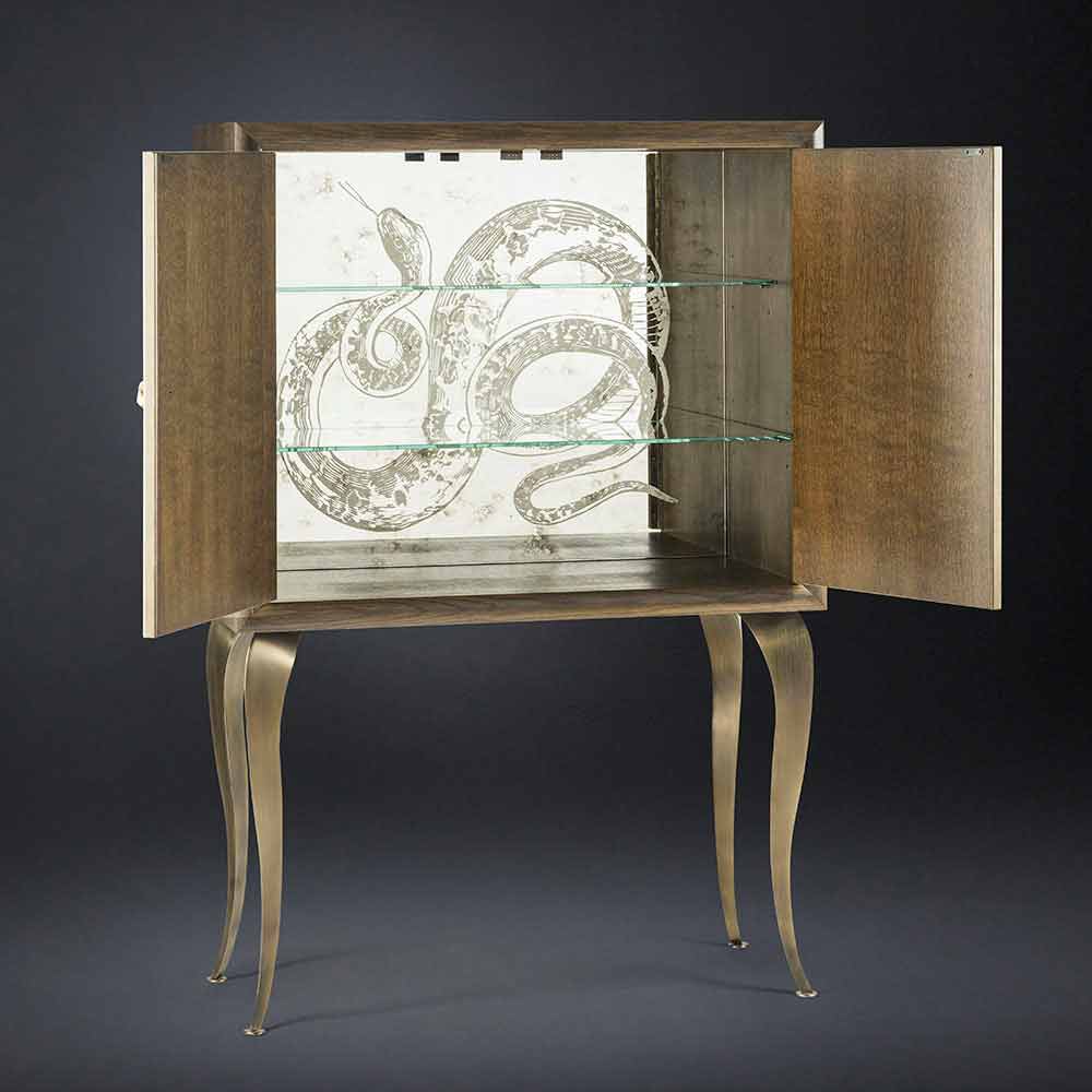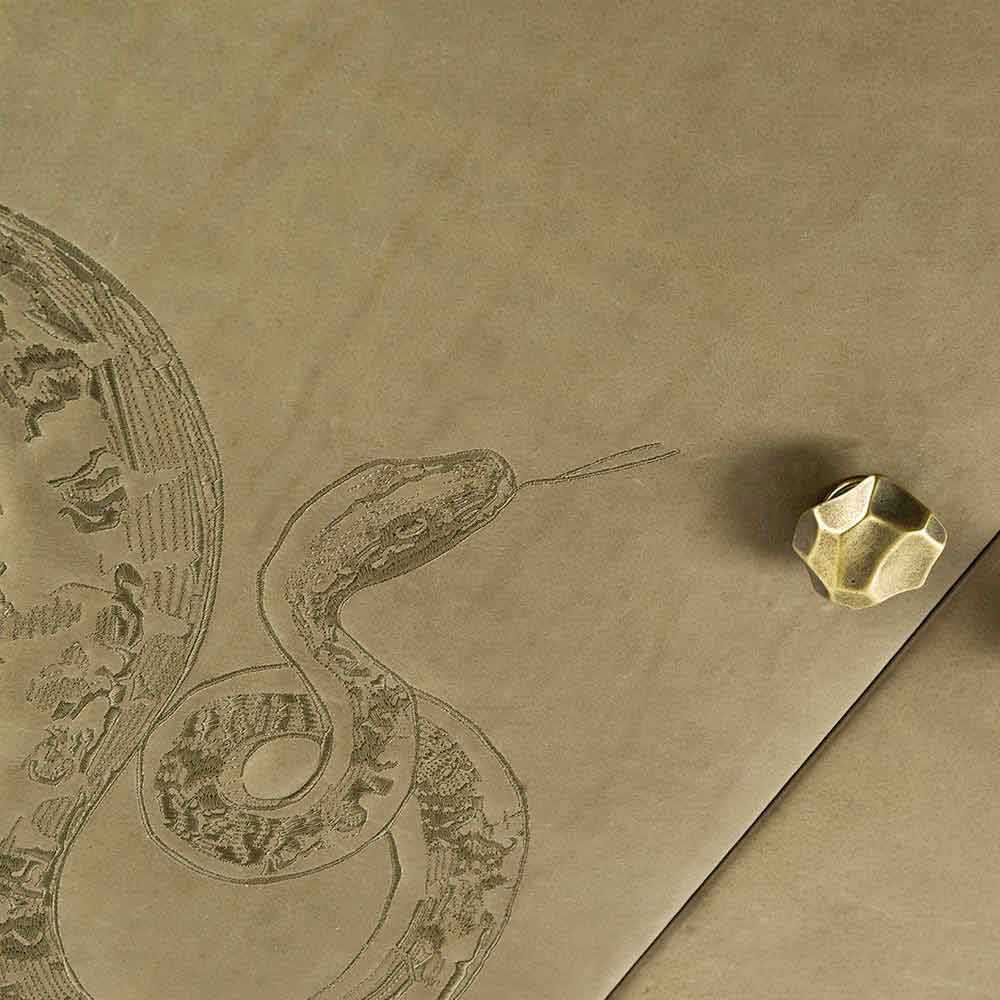 The snake of the Garden of Eden, which is the symbol of the whole collection, is embroidered on the cabinet door and on the inside.