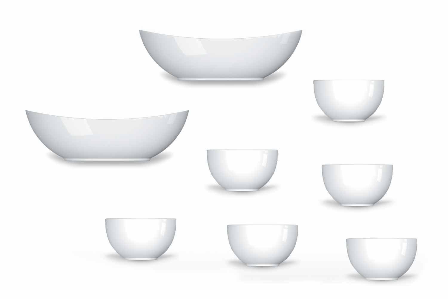 Dessert, fruit or ice cream cup service with 2 modern design bowls in white porcelain, 8 pieces.