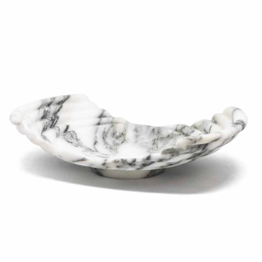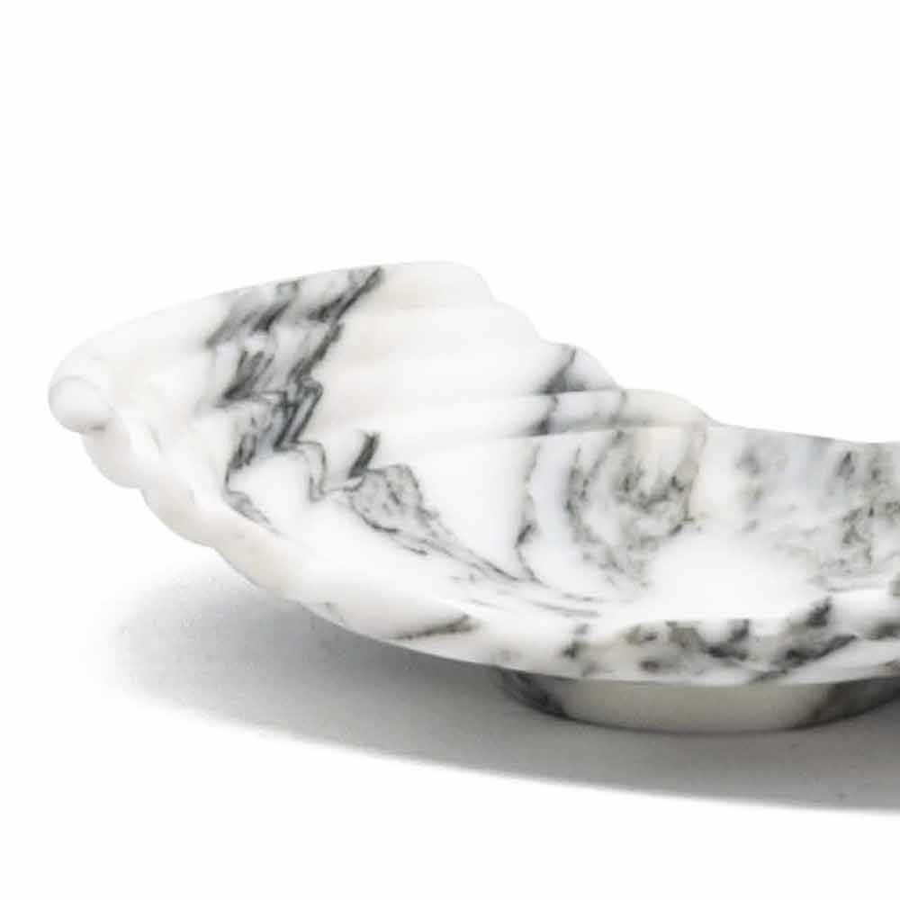 Decorative tray made entirely of arabesque marble, a variety of fine white marble with dark grey veins, called "arabesques".