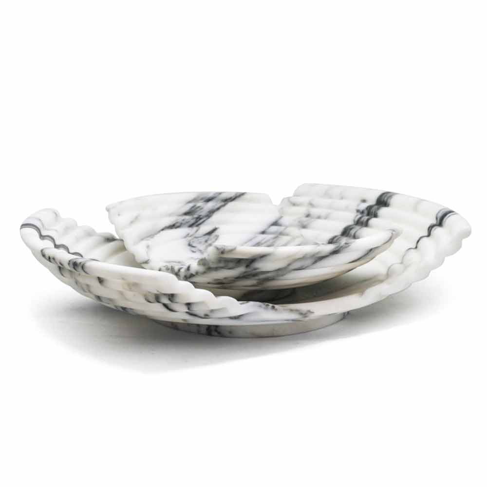 Curved decorative design tray made of high quality arabesque marble Made in Italy.