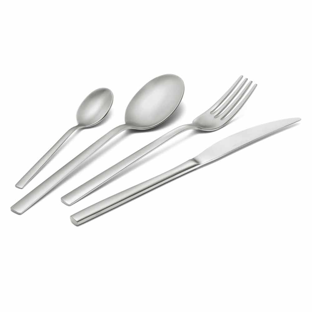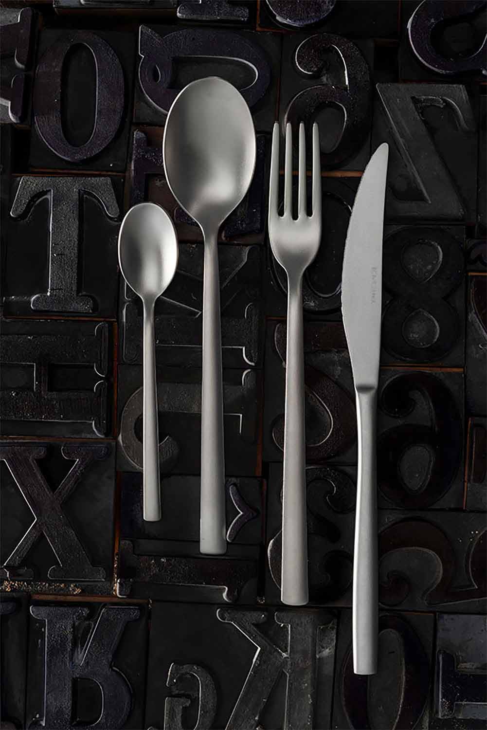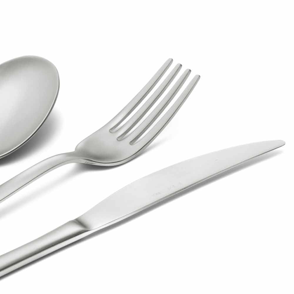 Complete cutlery set in sandblasted stainless steel, 24 pieces of made in Italy design.