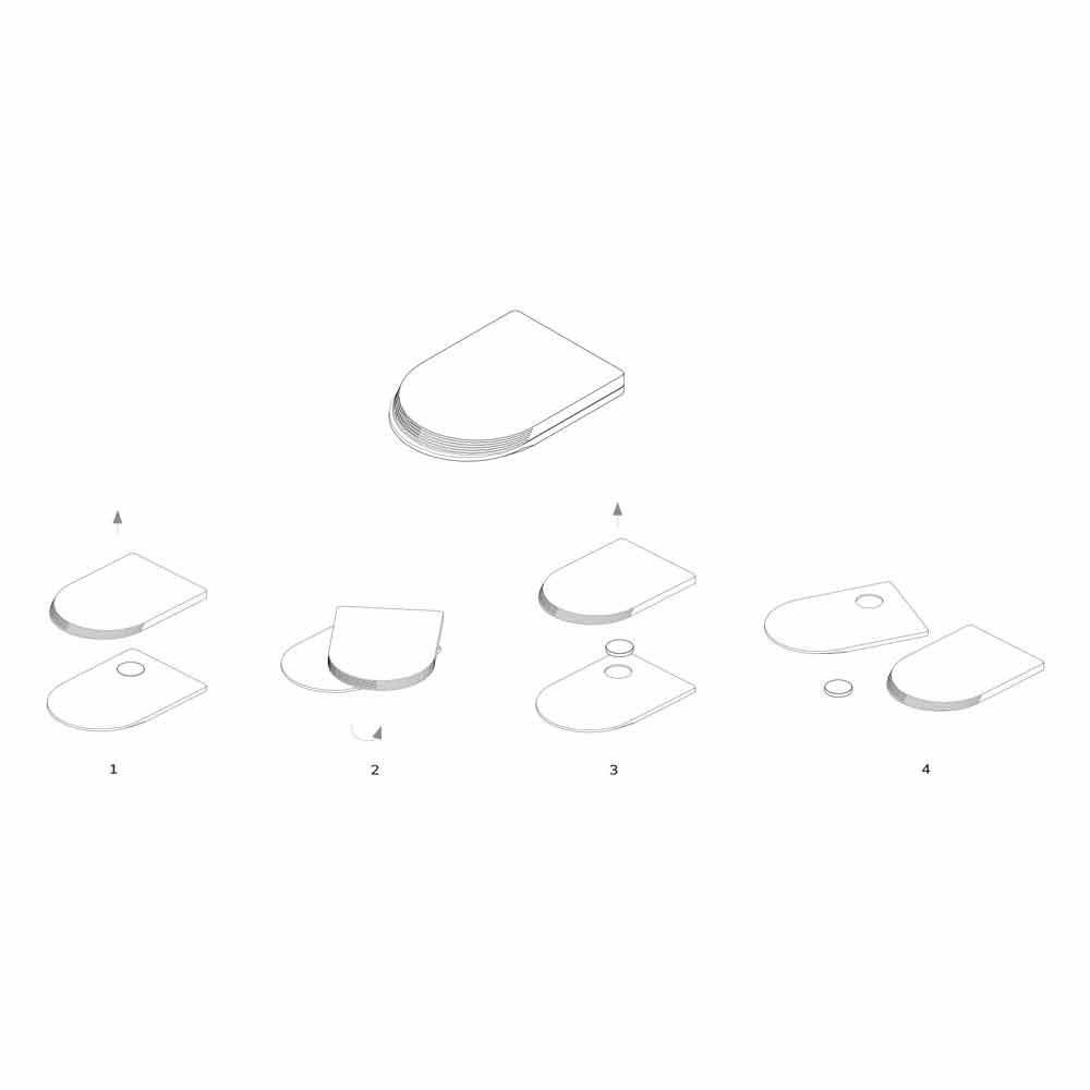 • White Carrara marble, sandstone, 316 stainless steel, Ash wood.