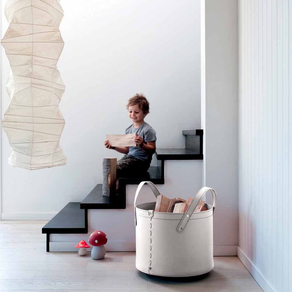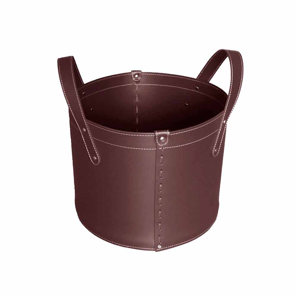 Cylindrical log holder in regenerated leather with Round Firestyle wheels