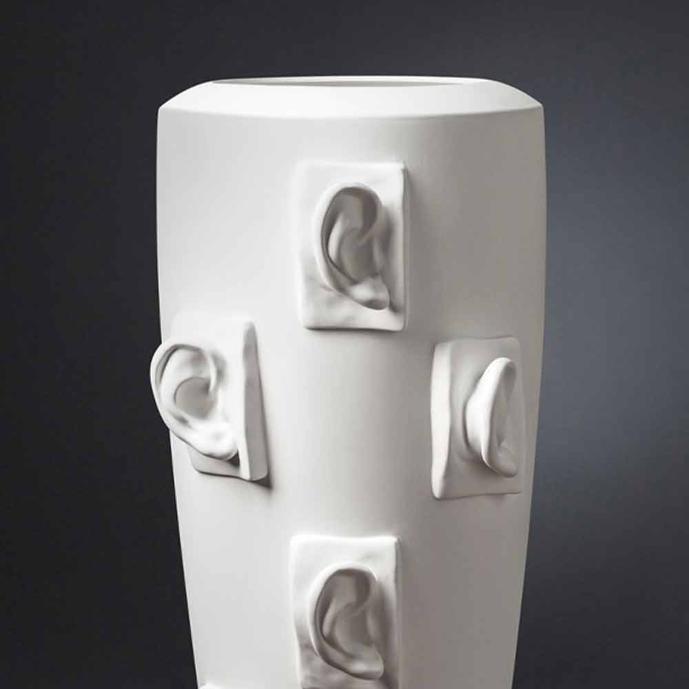 Original indoor ornamental vase with decorations in opaque white ceramic handmade through a production entirely made in Italy . A design conceived and conceived for those who love to furnish their spaces in an extremely innovative and revolutionary way for an exclusive aesthetic that can fill the room with character and personality. From the union between simple and minimal lines and elements extrapolated from works of art of the Italian culture, an original vase is born whose value is emphasized by the use of ceramic, an elegant and quality material . The craftsmanship underlines its value and is marked by precision, passion and love for tradition. The result is a unique furnishing idea ideal for the most varied environments, from home furnishings to hotels, restaurants, contract areas, spas but also as a setting for events and weddings.