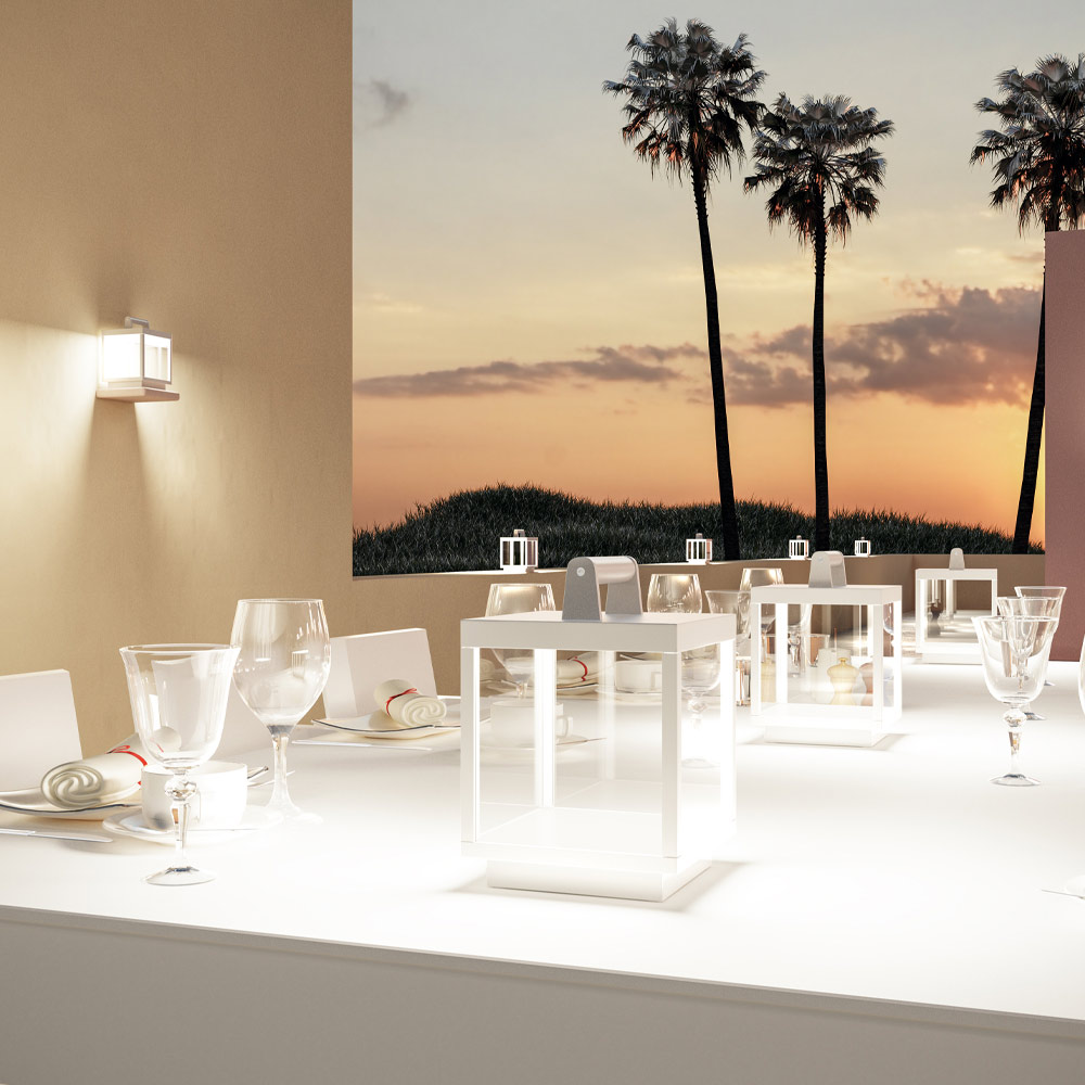 a minimal and sober style, ideal for illuminating any domestic or contract space with personality and in an optimal way. The practical portable structure increases its functional side, allowing it to be moved quickly and easily if necessary.