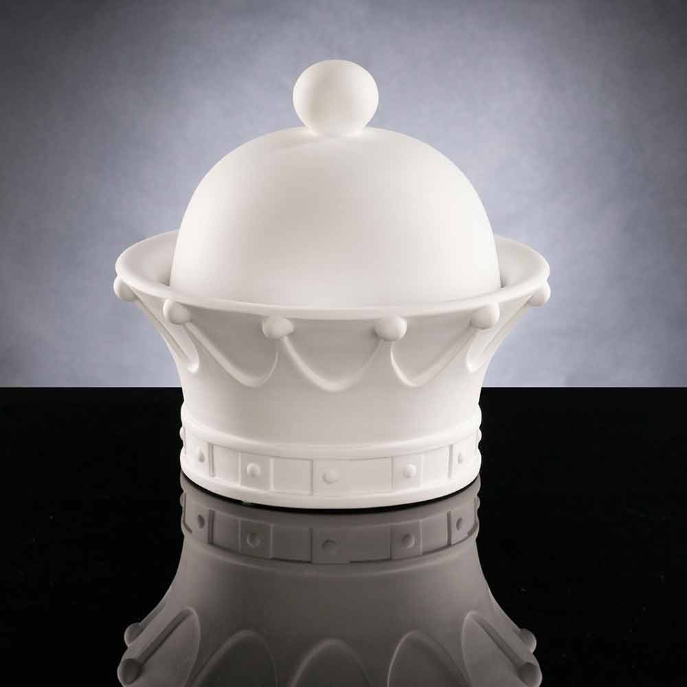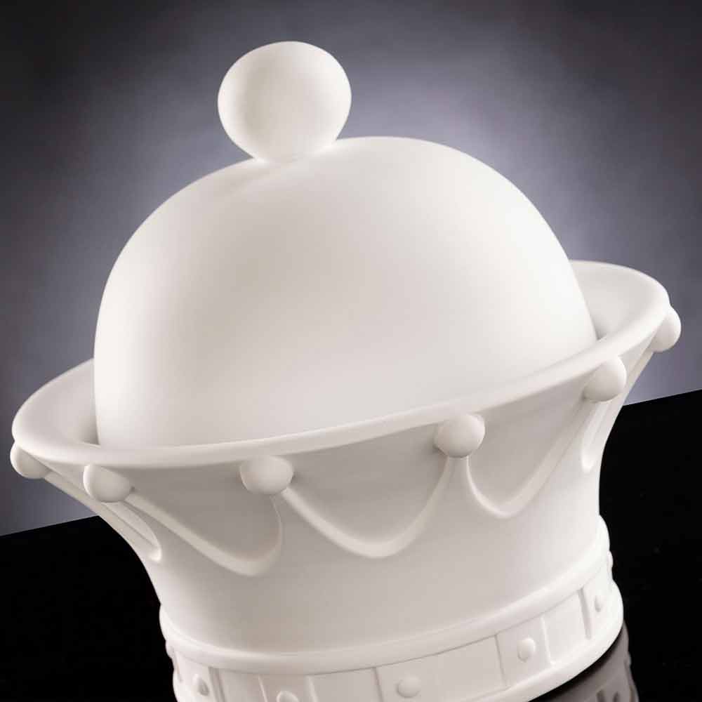 Decorative statue in the shape of a crown in white ceramic Made in Italy, fine.