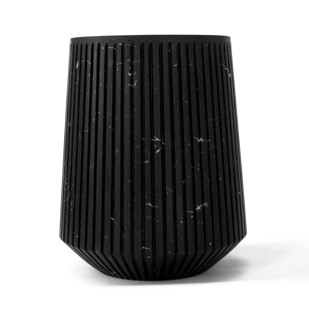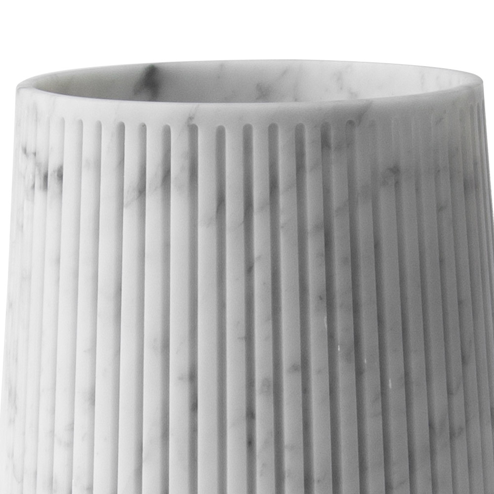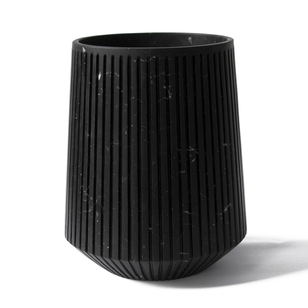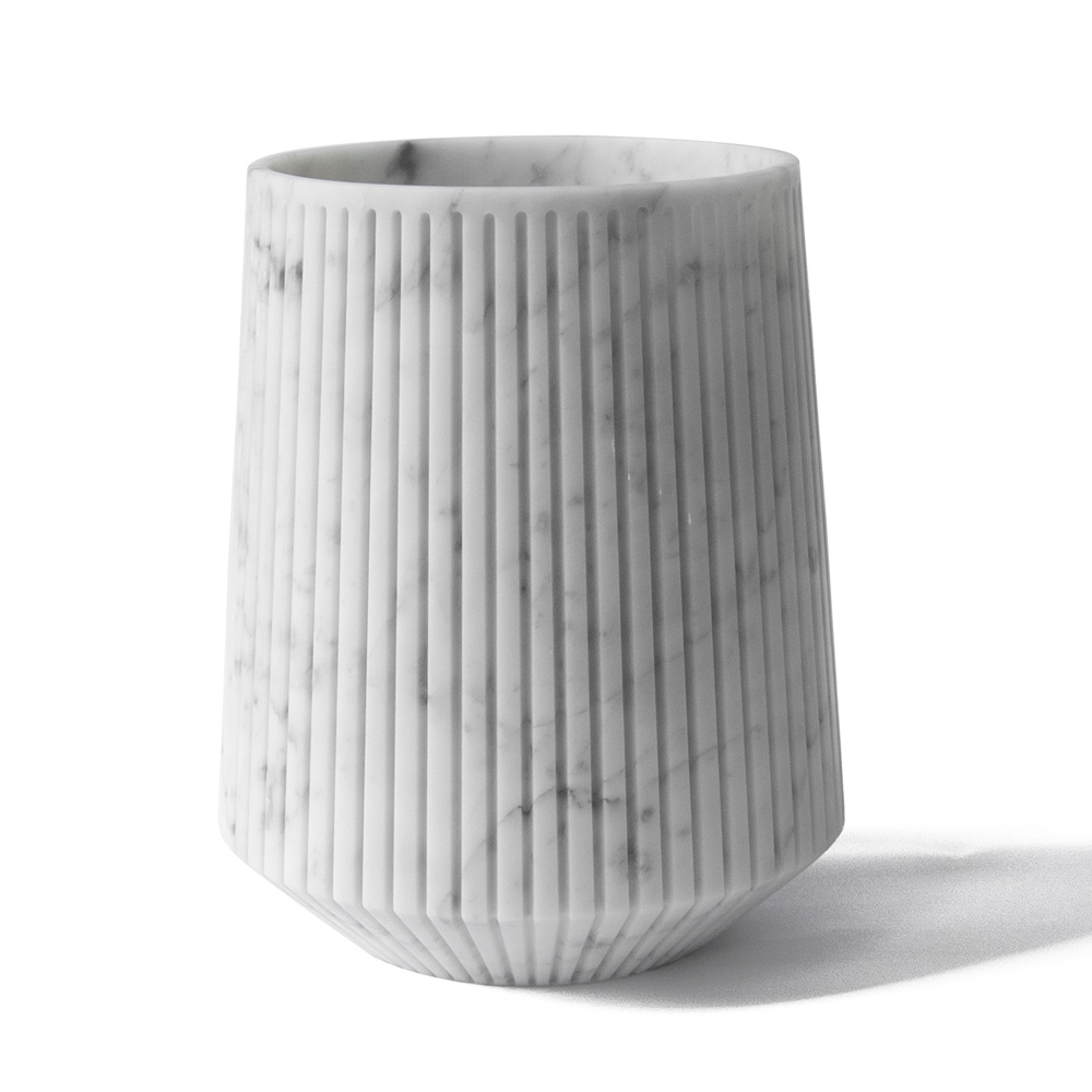 Large handcrafted vase in white or black marble with stripes of made in Italy design.
