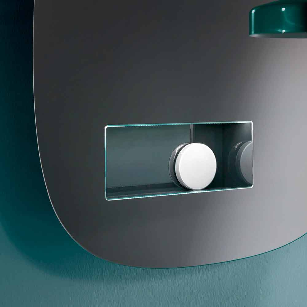 The soft and rounded queues welcome the peculiar and practical storage compartment , internally lacquered in a black finish, and equipped with a LED lighting system with motion sensor.