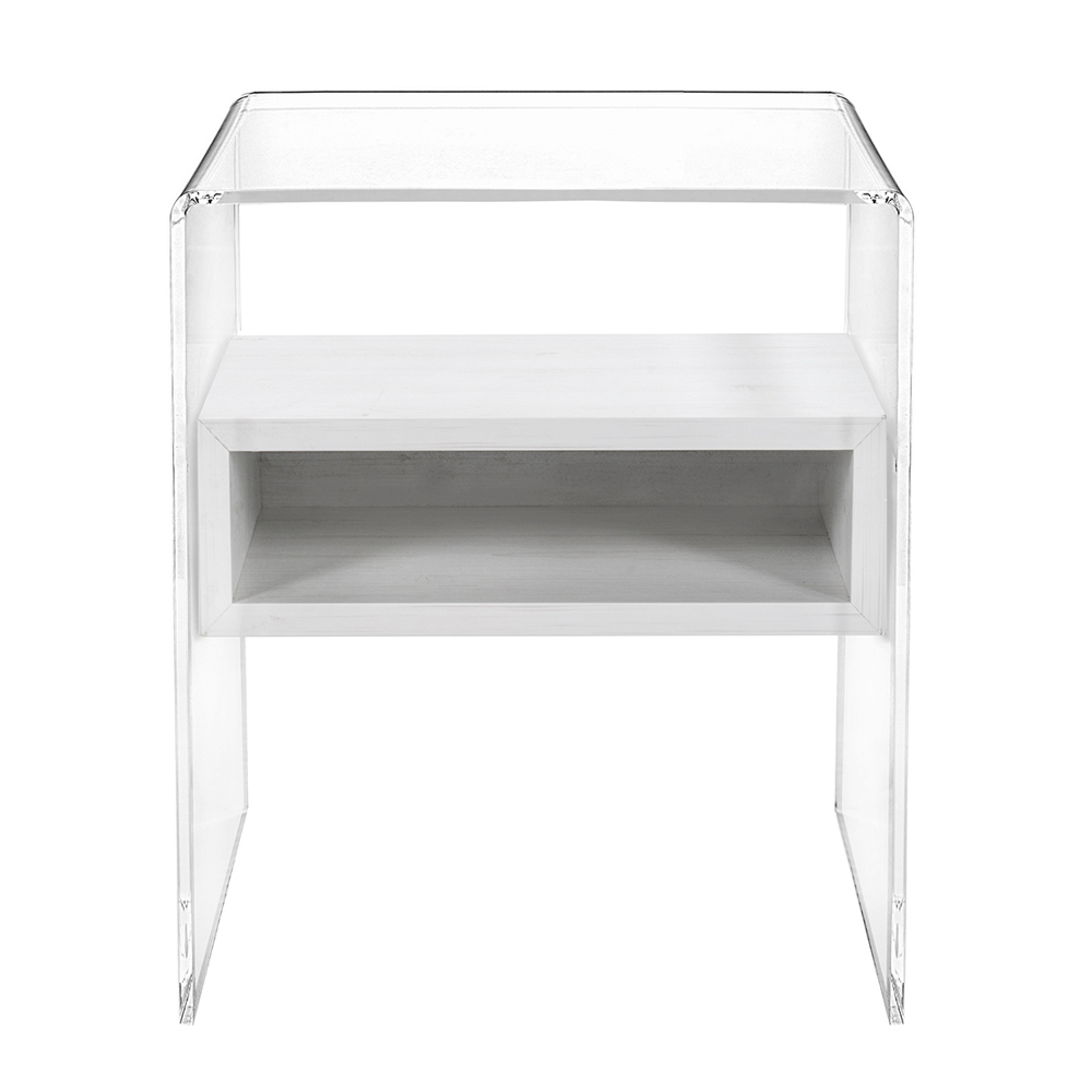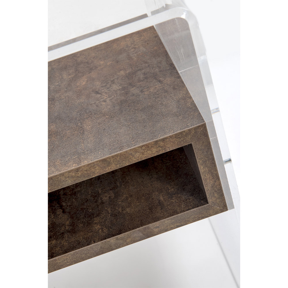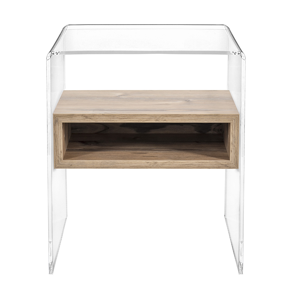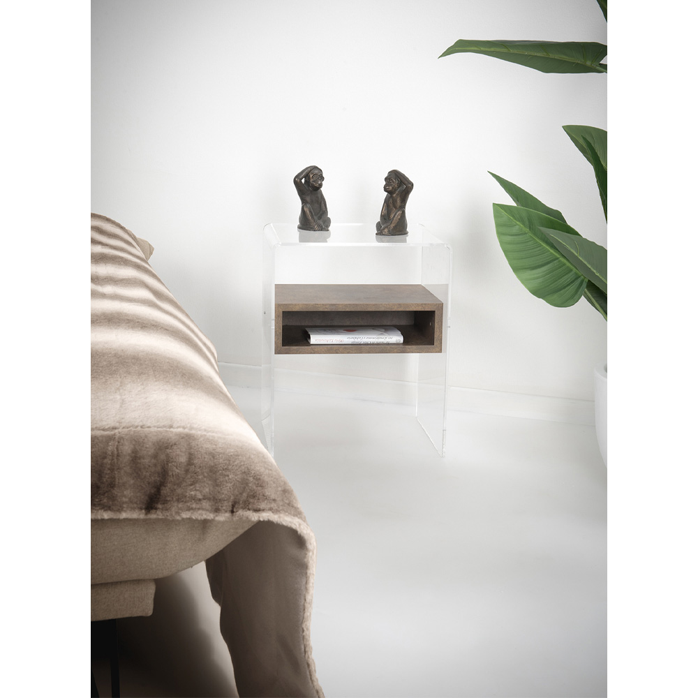 Bedside table or coffee table in transparent plexiglass and wood essences made in Italy.
