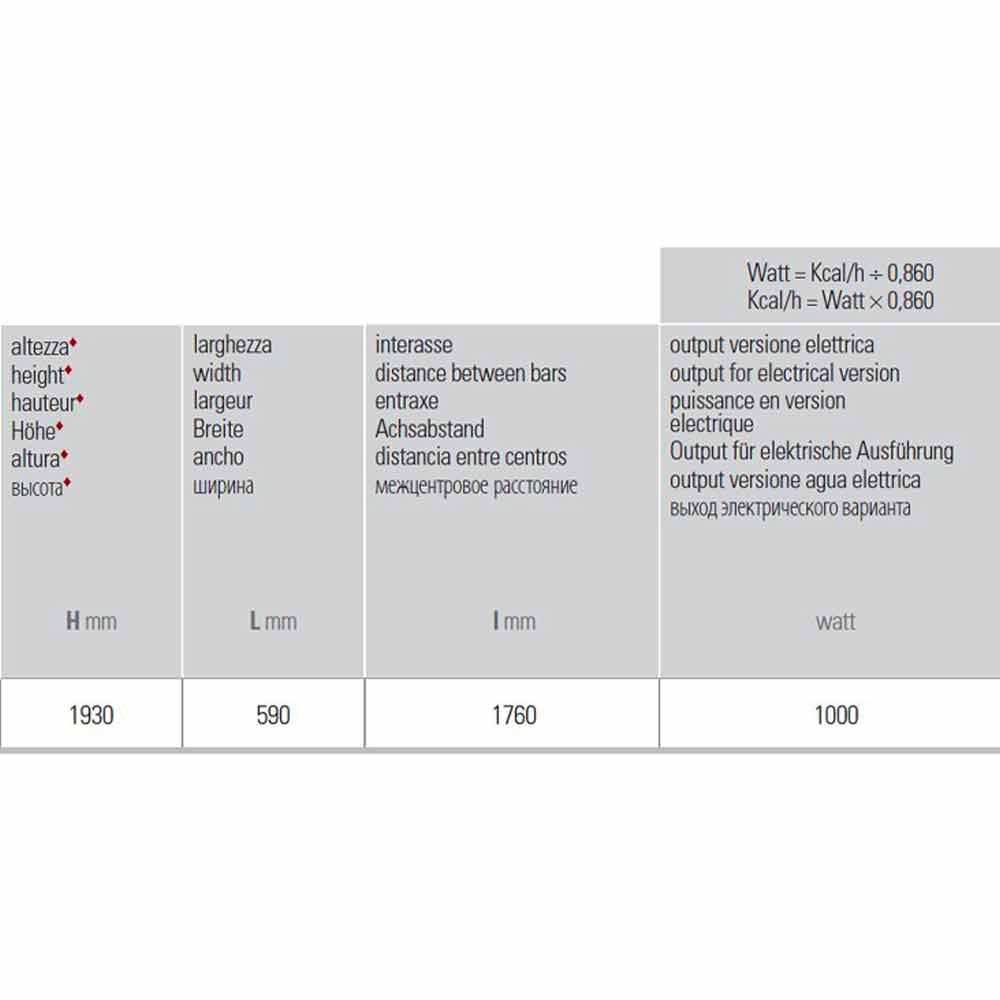 The 110 mm thermostat must be added to the height. White thermostatic box as standard for white radiators; chrome for the colored radiators and stainless steel finishes. Single-phase 230 volt power supply.