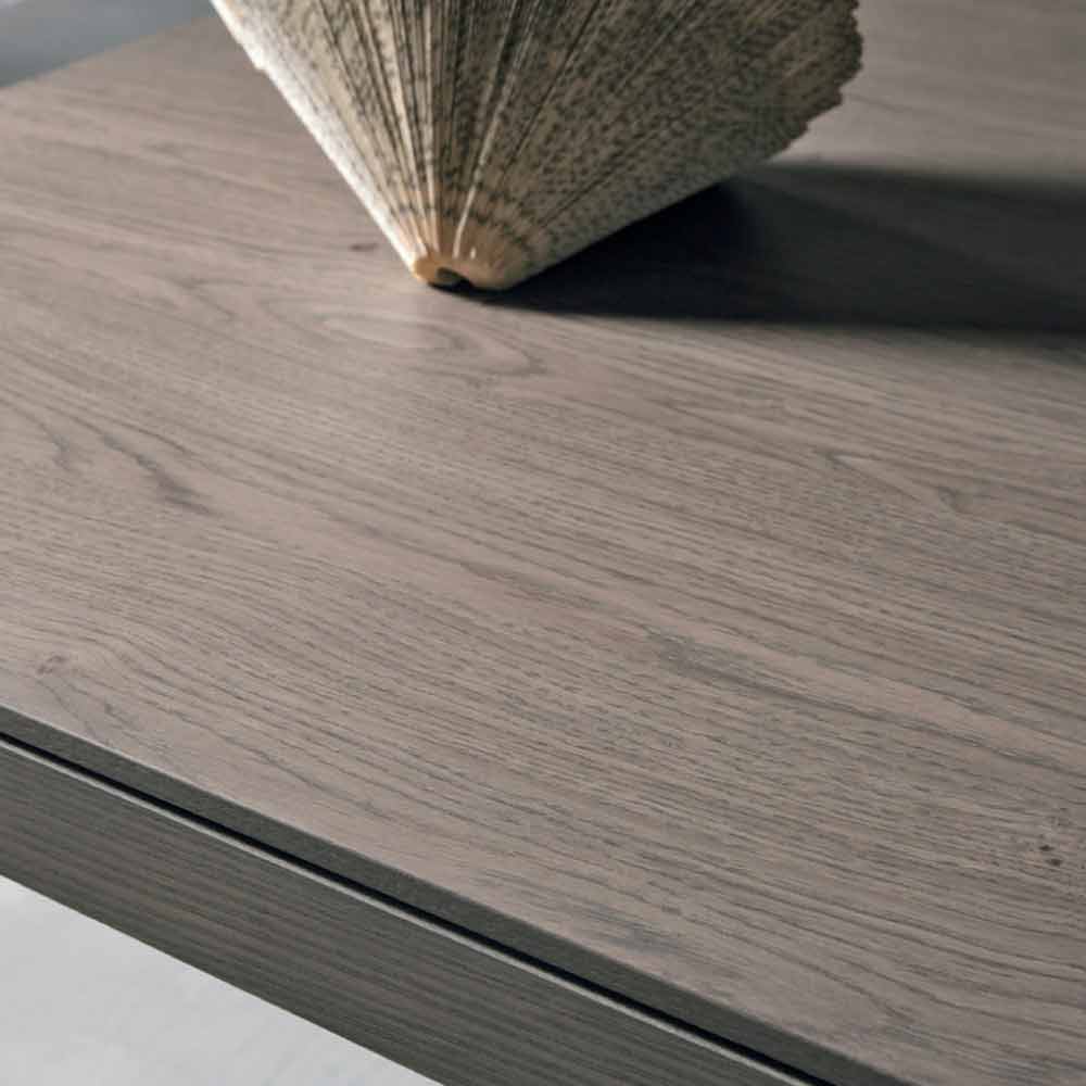 top is made of knotted oak veneer with an inclined profile on two sides, 18+42mm thick and available in different finishes: