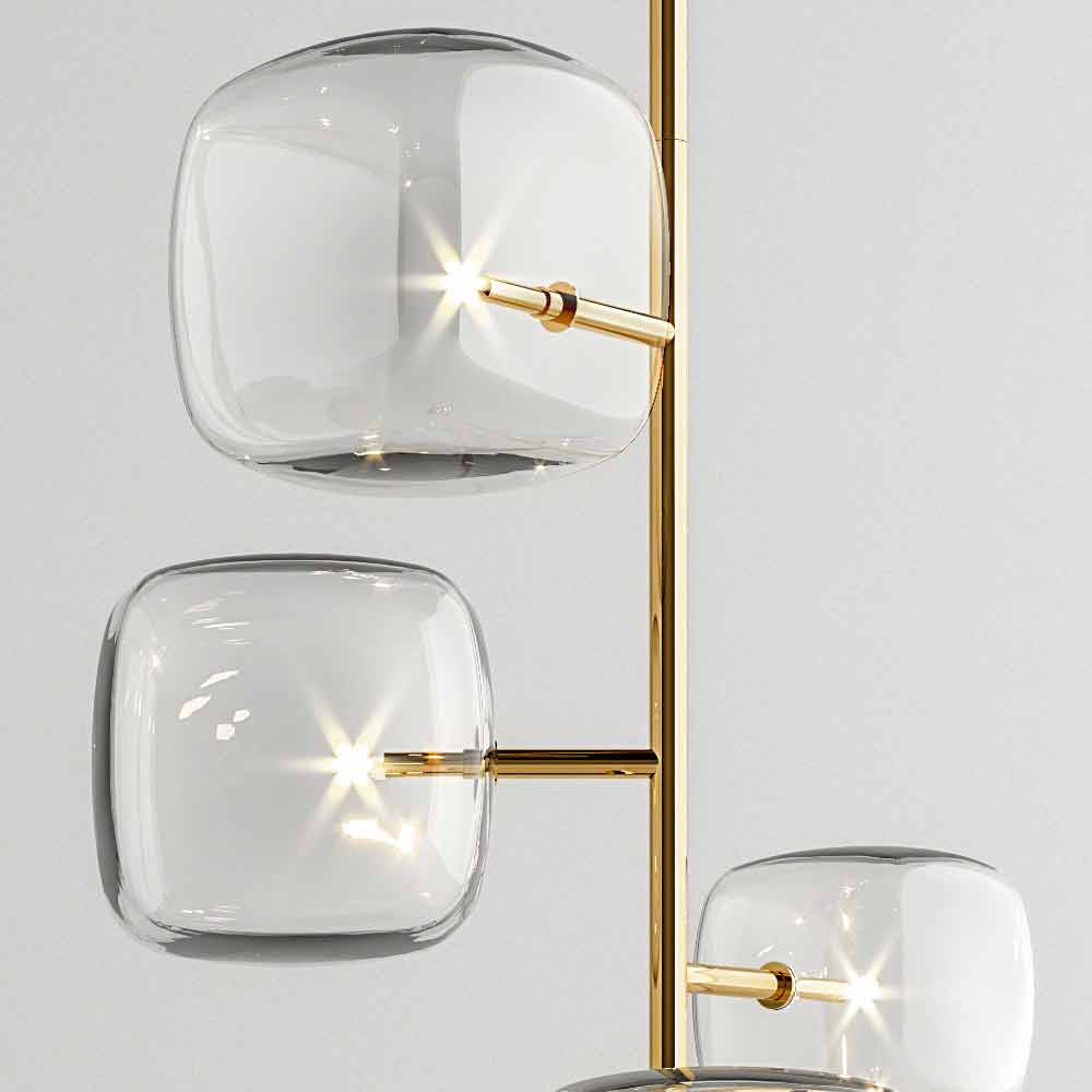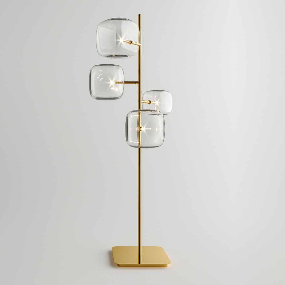 Design floor lamp in polished metal with rounded glass cubes Made in Italy.