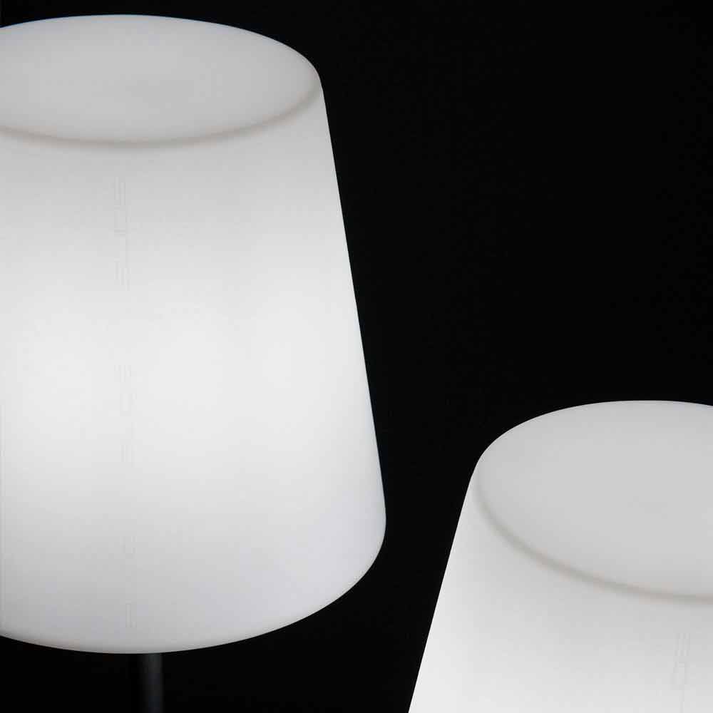 The lampshade is made of polyethylene in bright white and the base is made of galvanized steel. There are three different sizes available for this piece of furniture: