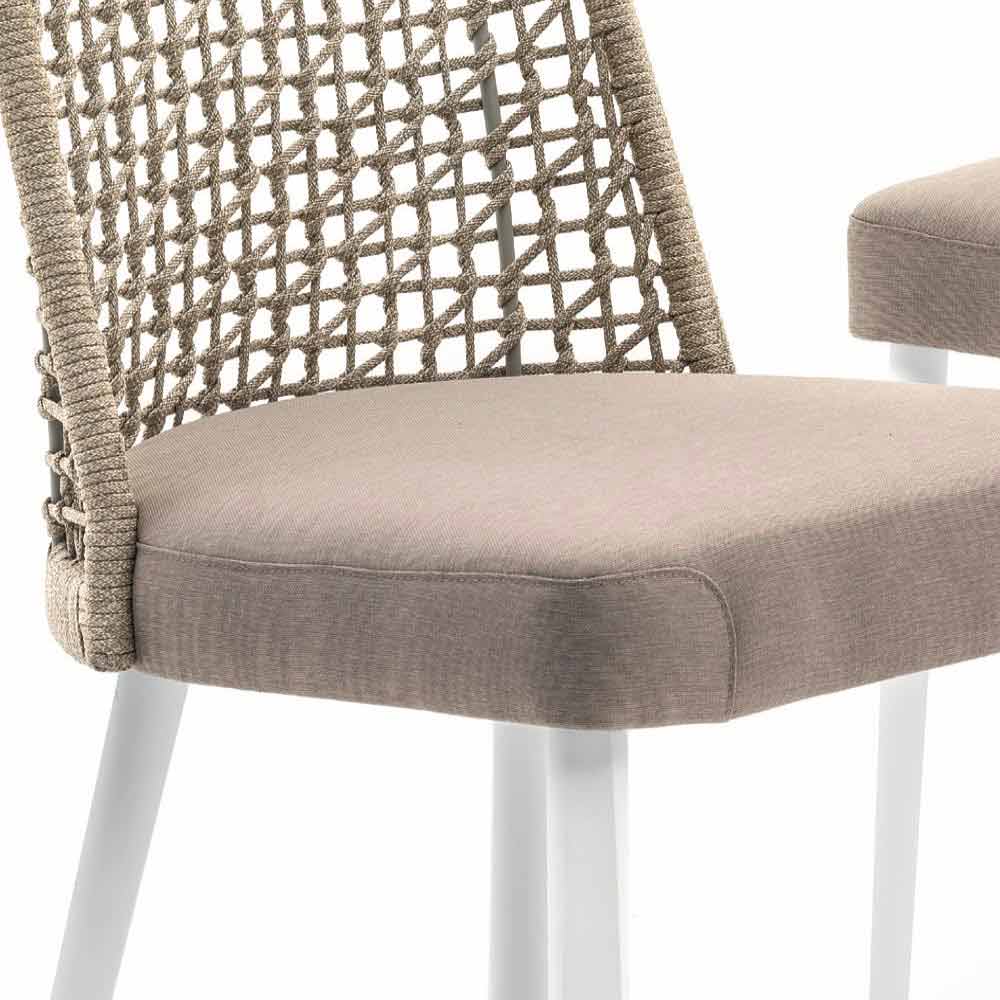 Emma is a garden chair characterized by a hand-woven synthetic fibre structure with beige powder-coated aluminium frame.