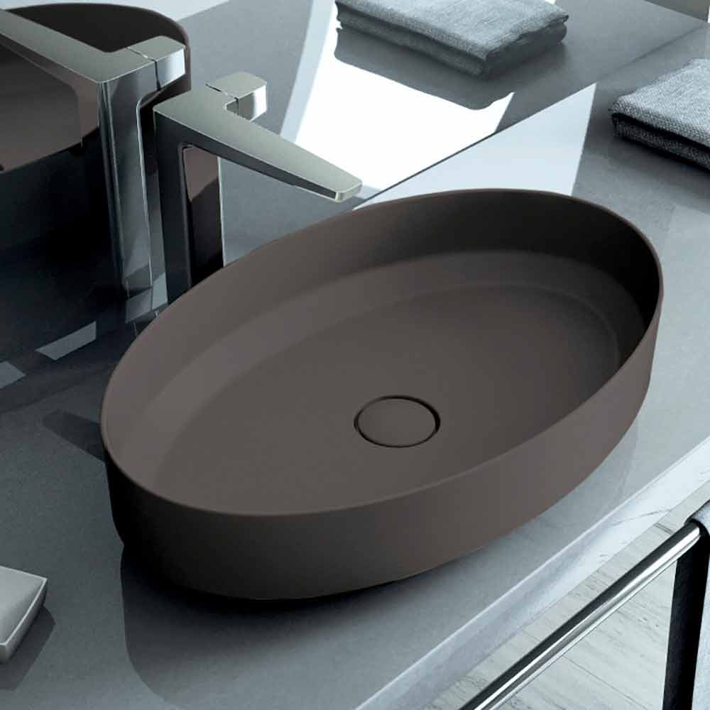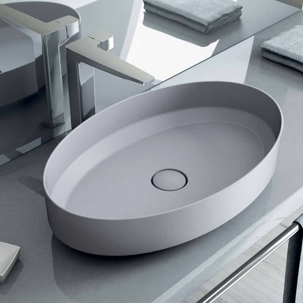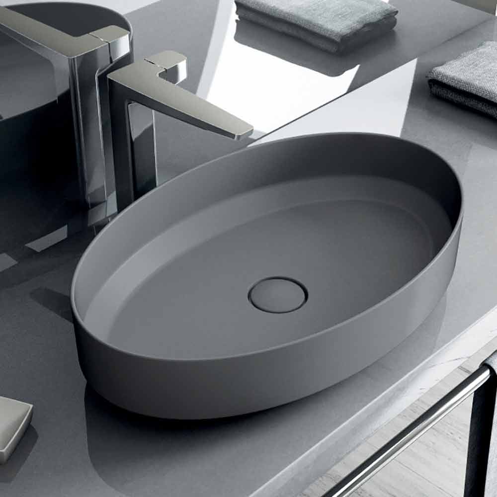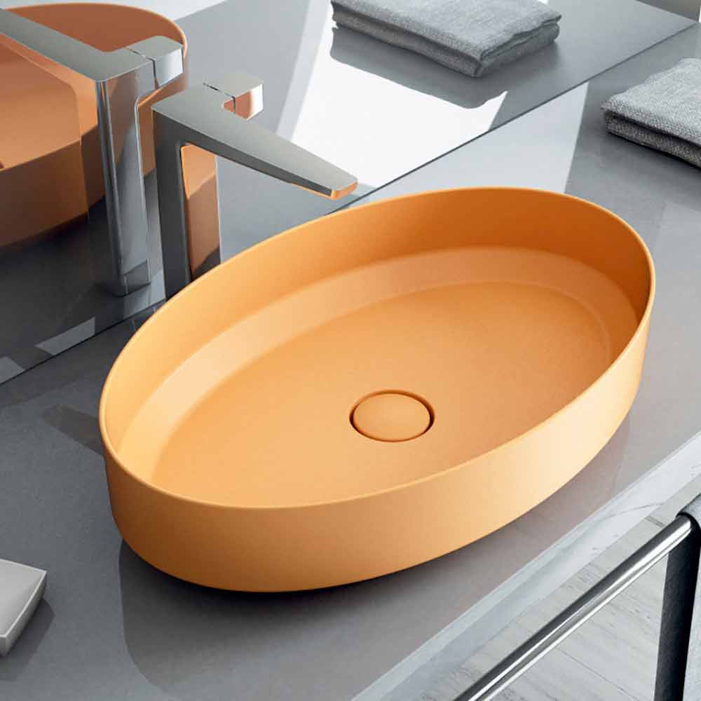 Modern design oval countertop sink in pottery made in Italy, Yoel