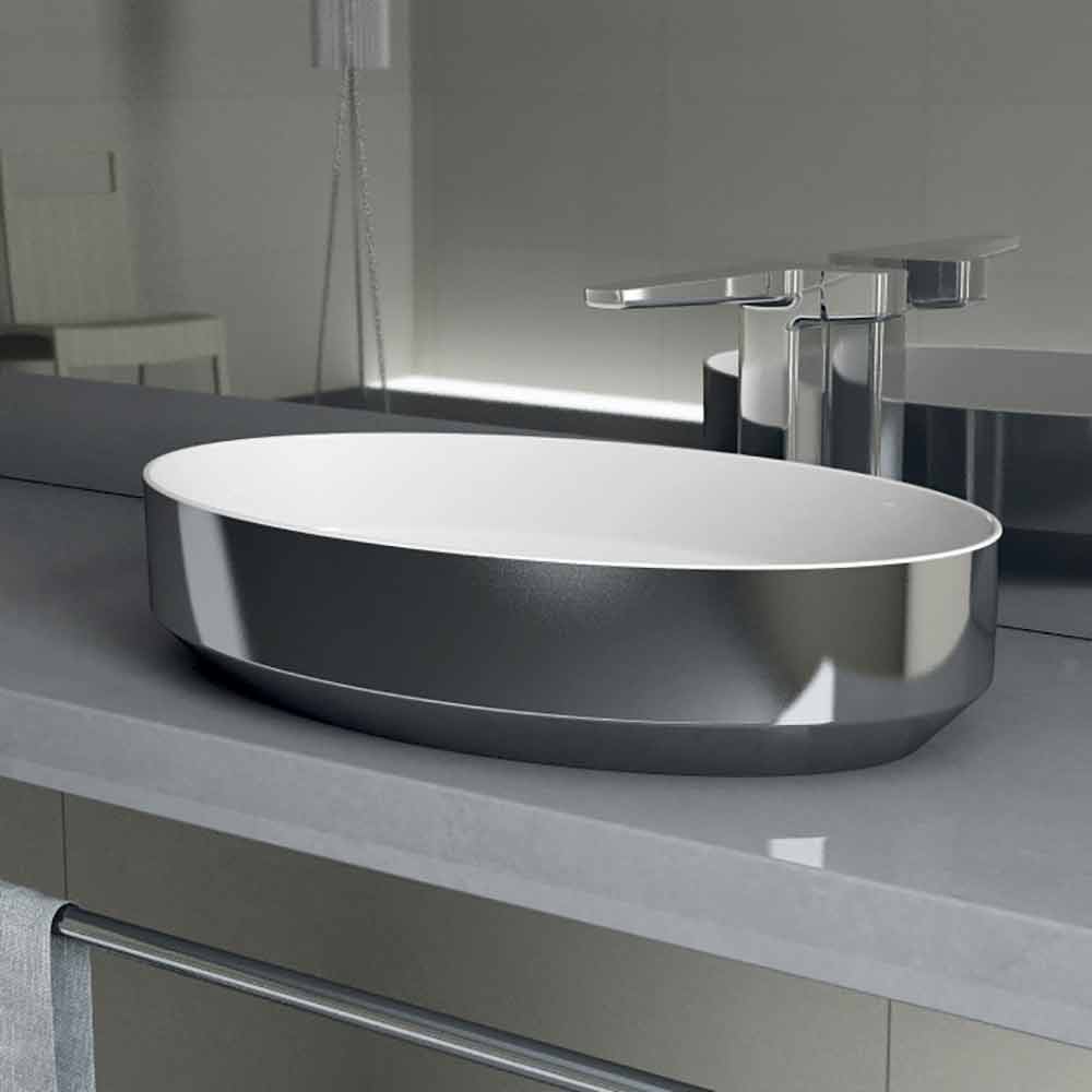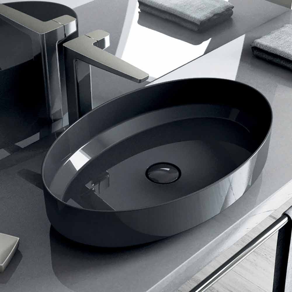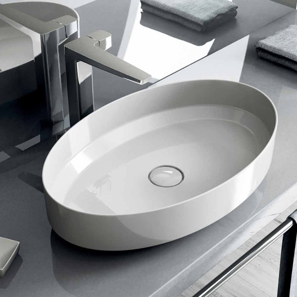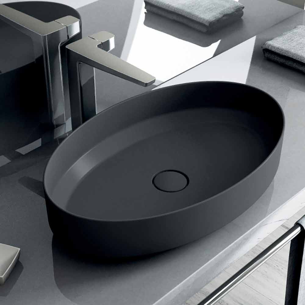 Modern design oval countertop sink in pottery made in Italy, Yoel