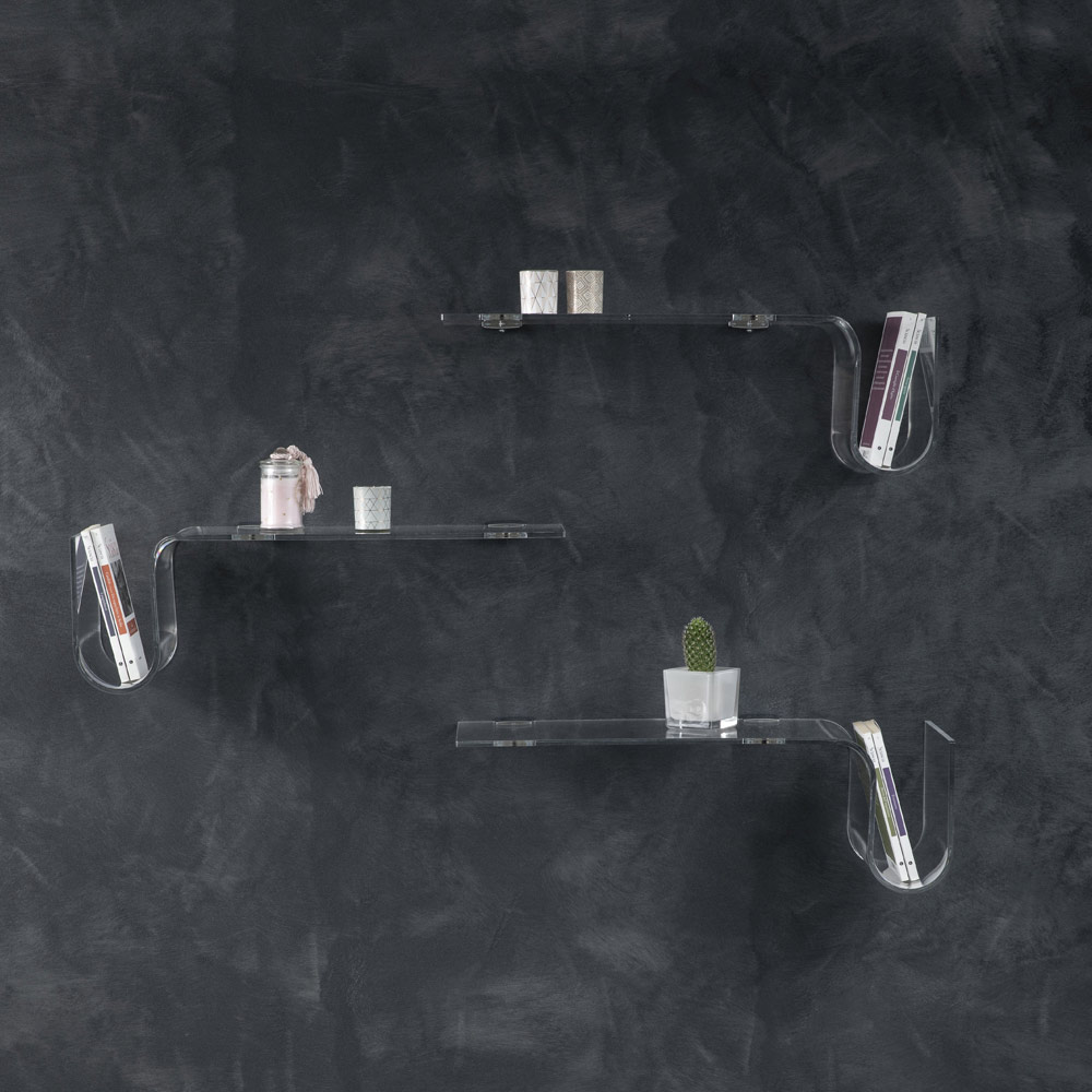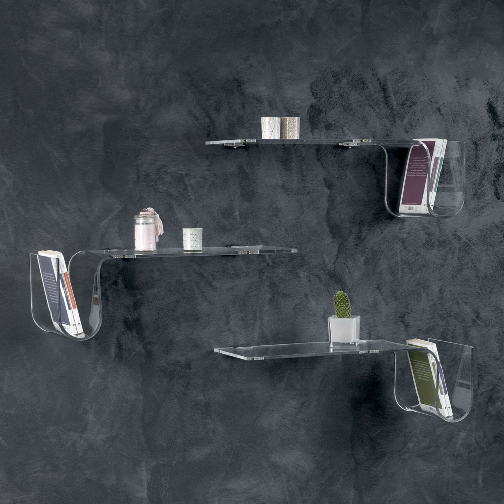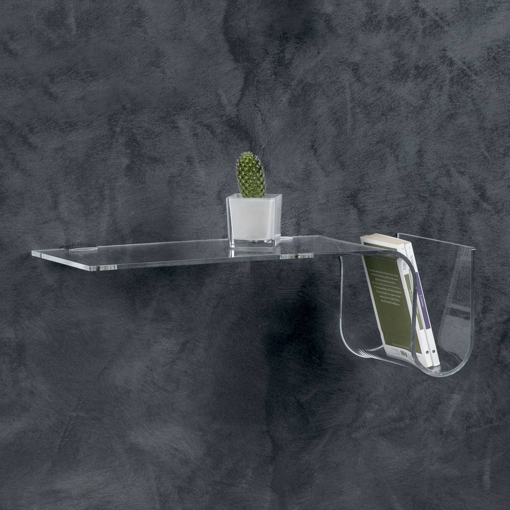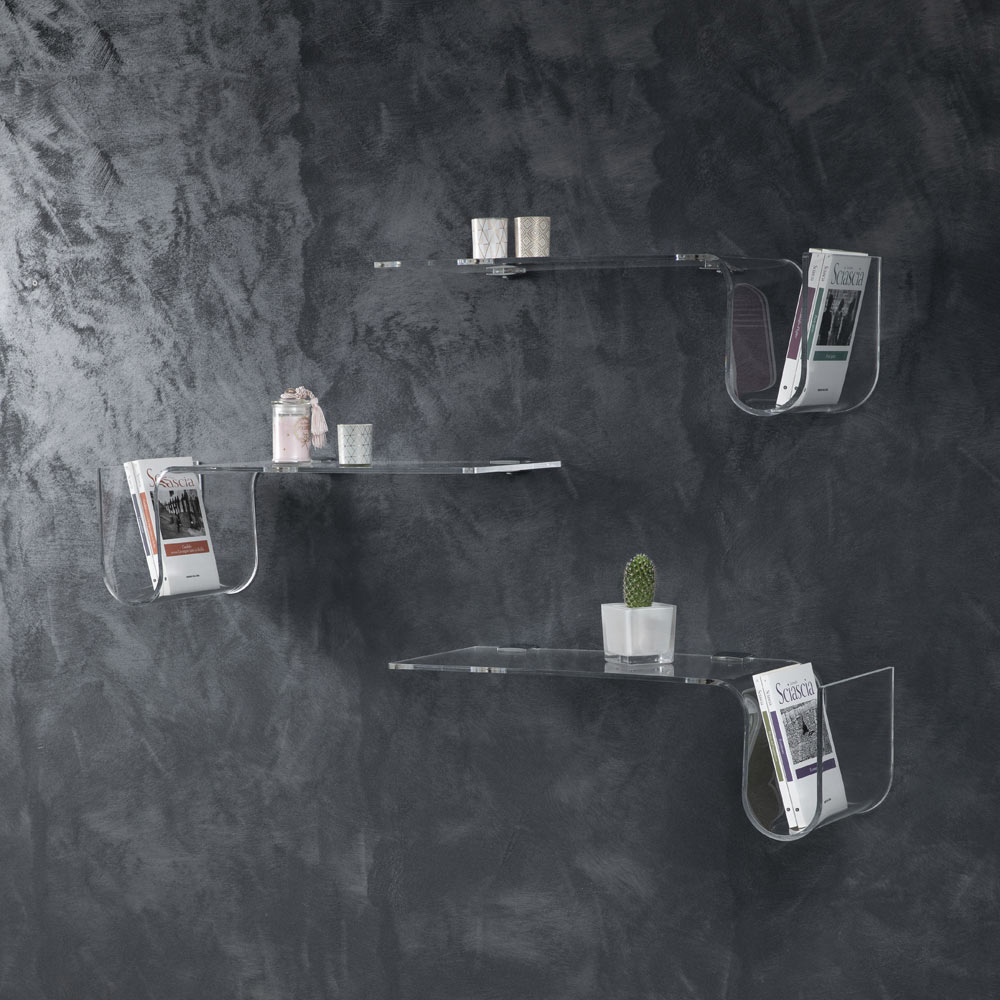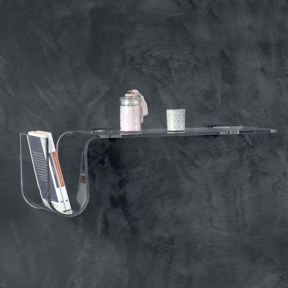 This wall shelf is made entirely of 8 mm thick transparent acrylic crystal , available in the right or left version.
