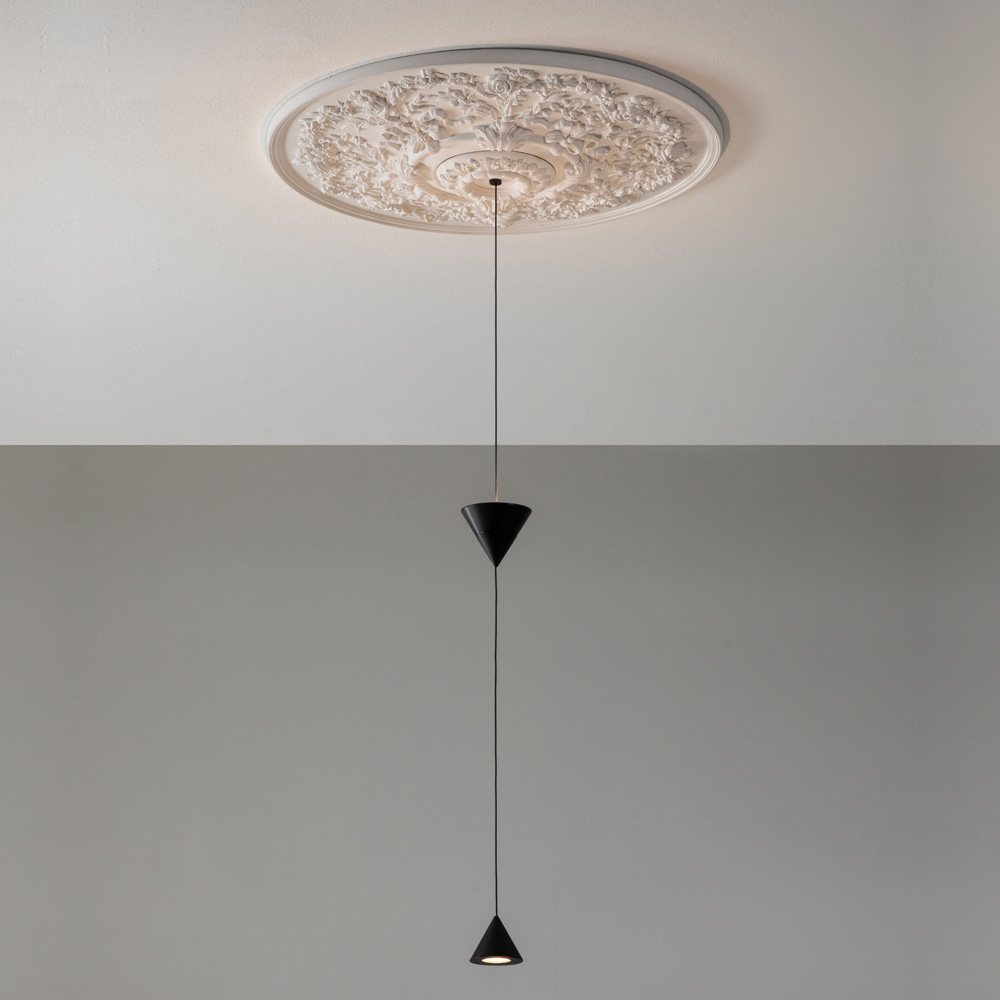 The lamp is made with a plaster and aluminium structure for an entirely Italian design which, through unconventional experimentation and continuous research between tradition and modernity , is able to amaze, dare and excite, allowing you to express your emotions through an original and personal decorative use of light.