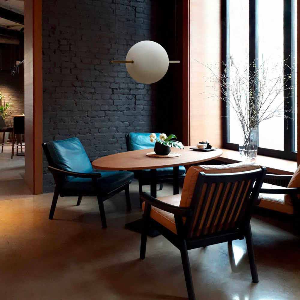 black or brushed brass barrel , the balanced geometry that is created gives a sense of lightness and stability to the environment.