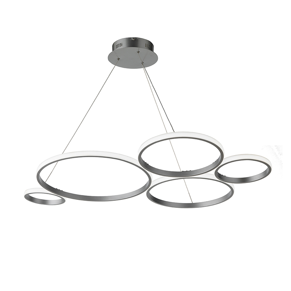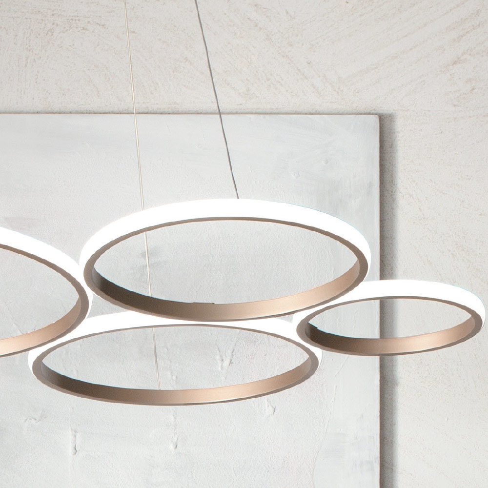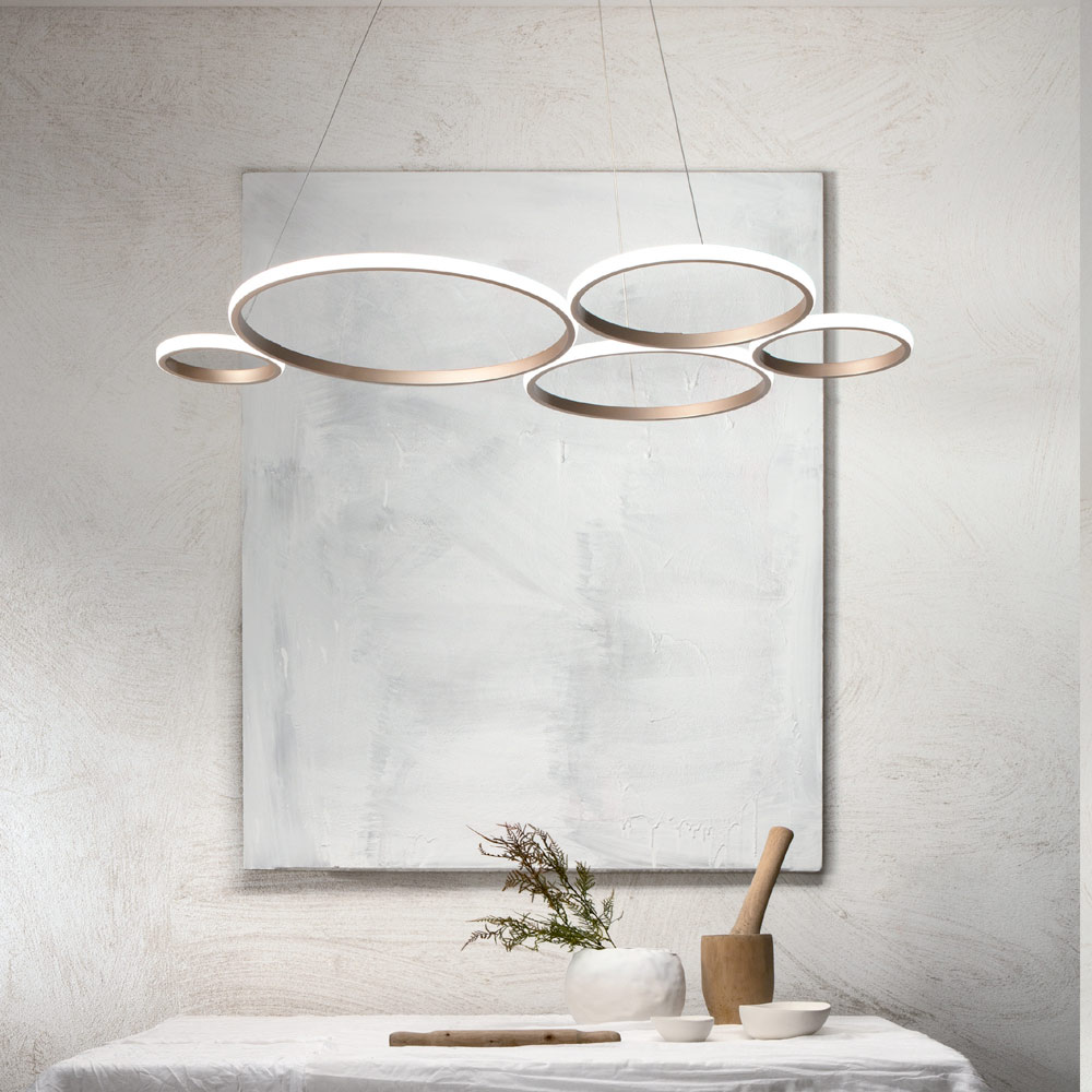 Pendant lamp for the lounge with an elegant design in gold or silver painted metal.